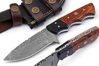 Custom Handmade Damascus Skinner Knife with Buffalo Horn and Rosewood Handle - 4.5" Blade