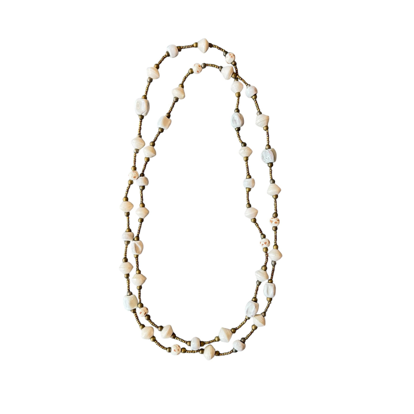 One of our classic pieces got an update this season! Made with Haitian ceramic beads and paper beads. Each ceramic bead is handmade by artisans who have dreams of a better life for their children. Our clay is sourced from central Haiti and processed at our artisan facility in Port-au-Prince, Haiti. The paper beads are hand-rolled on-site. Each piece is a work of art.