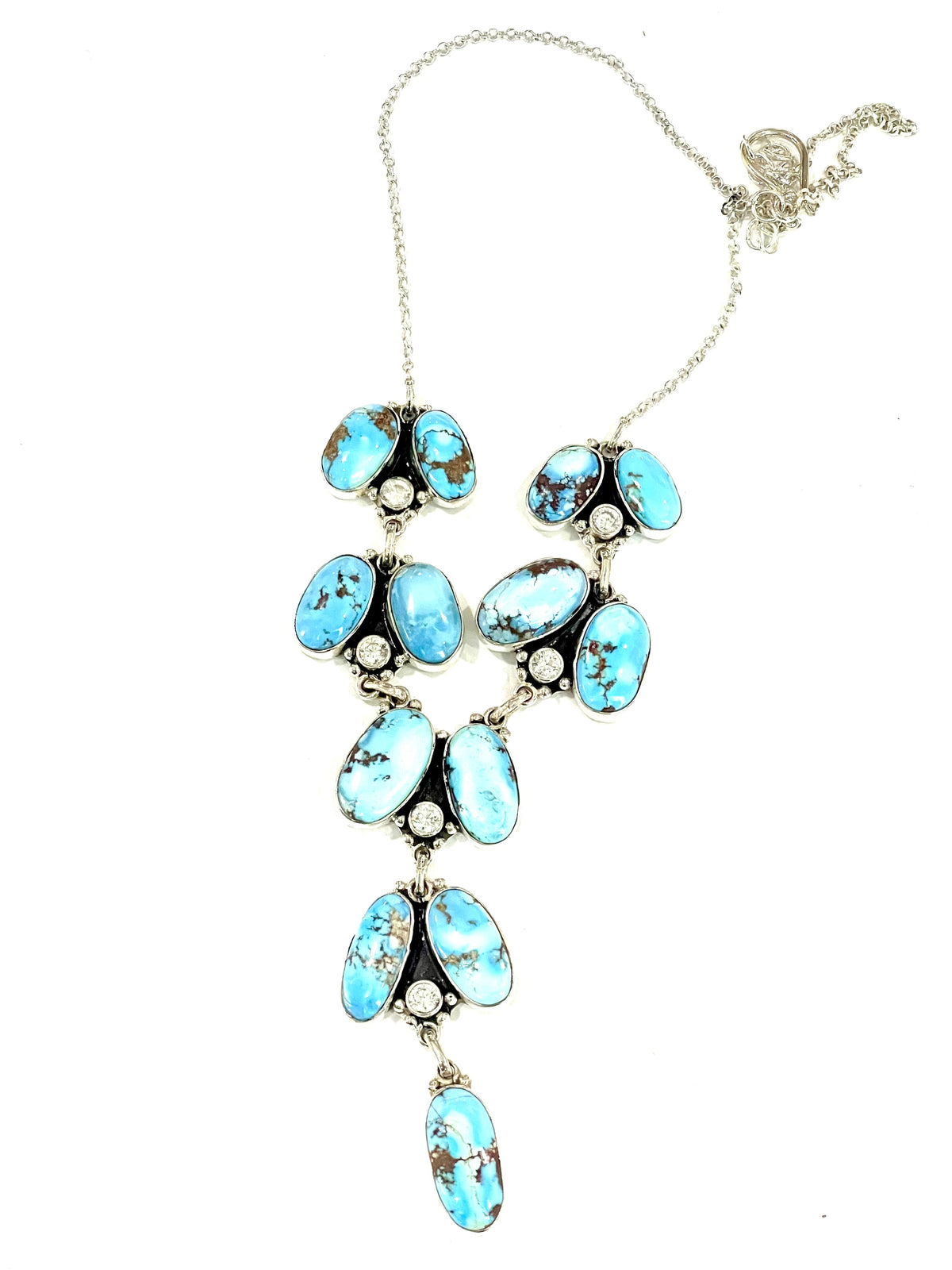 Gorgeous Sterling Silver, CZ & Golden Hills Necklace. This beauty measures 16 1/2 - 18 1/2 inches long. Add an additional 2 7/8 inches for pendant drop.