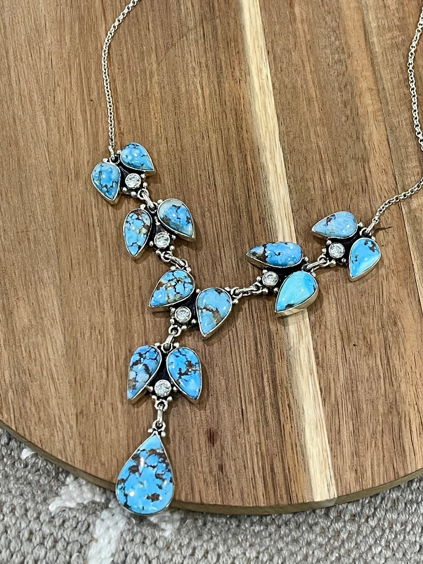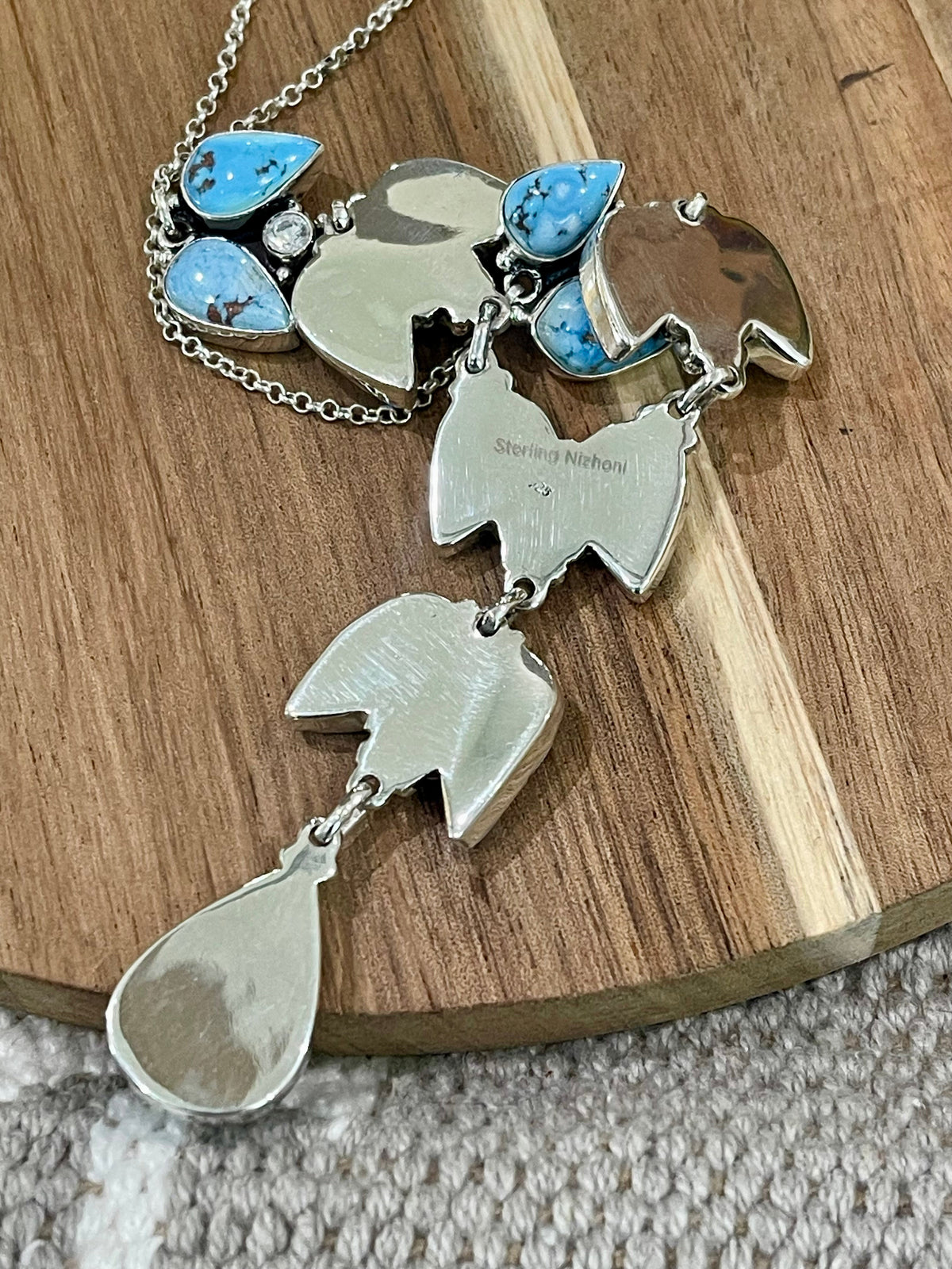 Handmade Sterling Silver, CZ & Golden Hills Cluster Necklace
