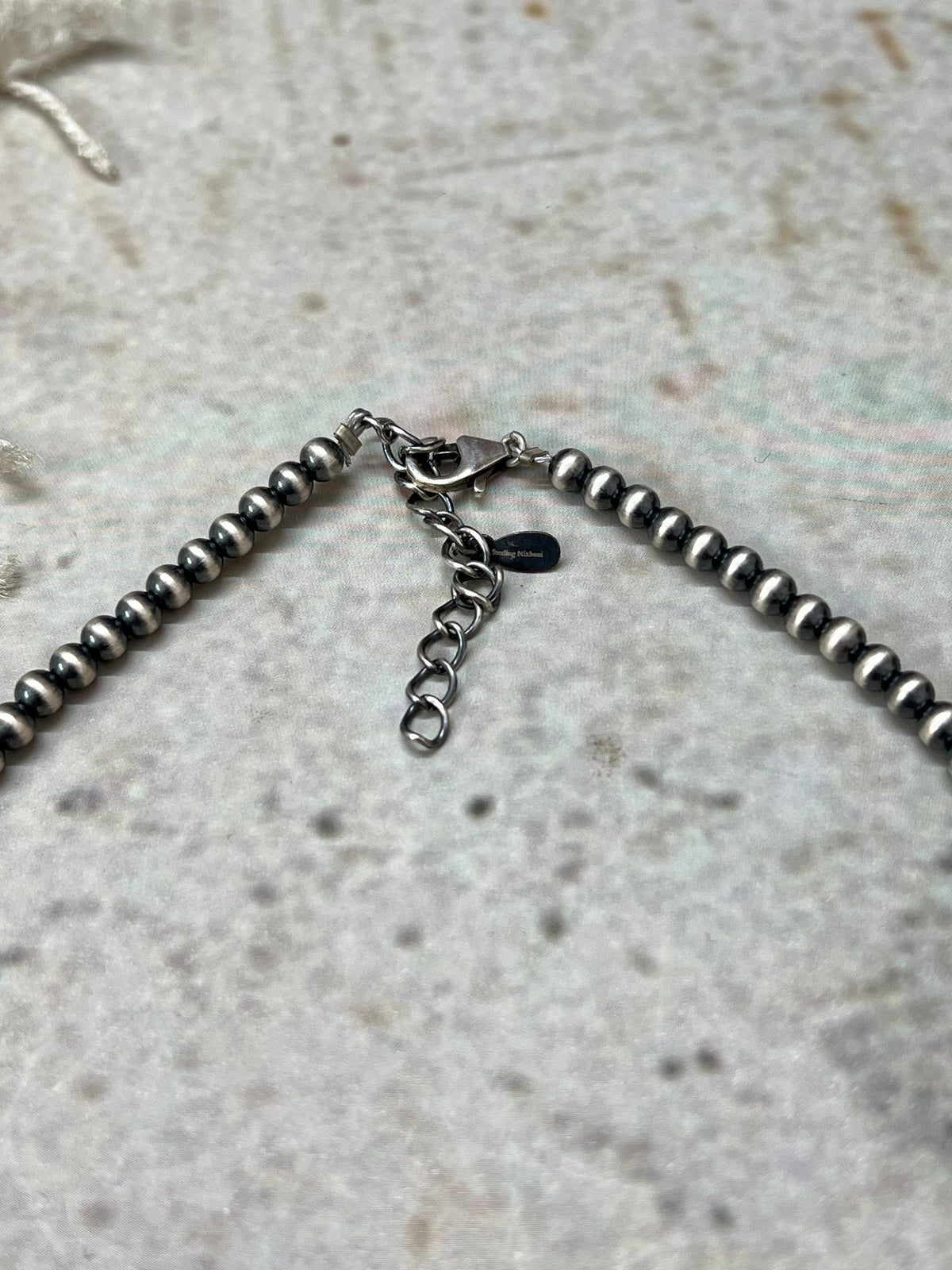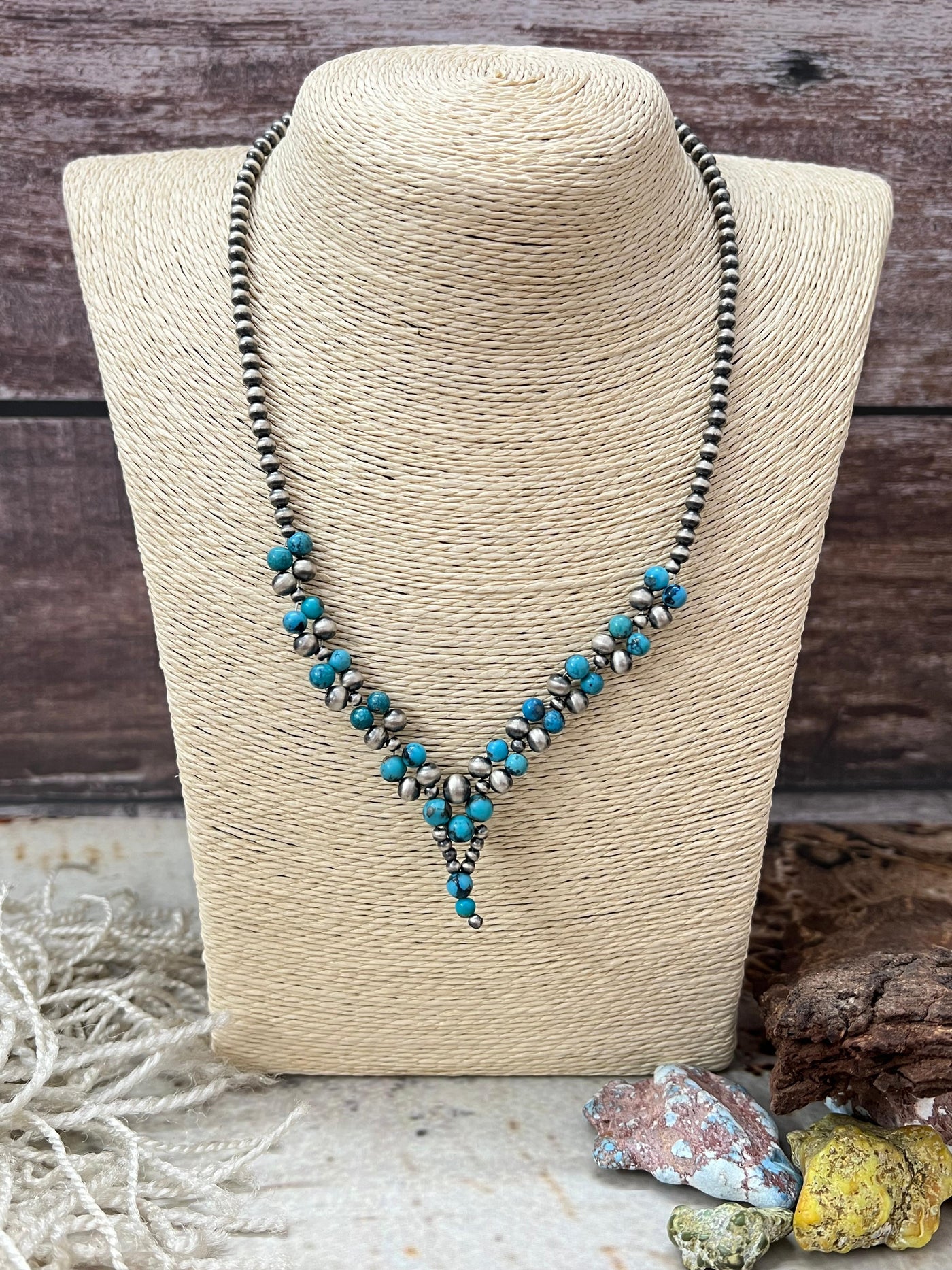 Handmade Sterling Silver Kingman Turquoise Beaded Necklace with Signed Nizhoni