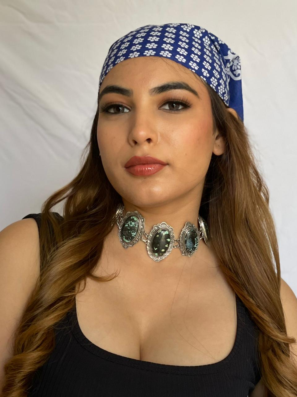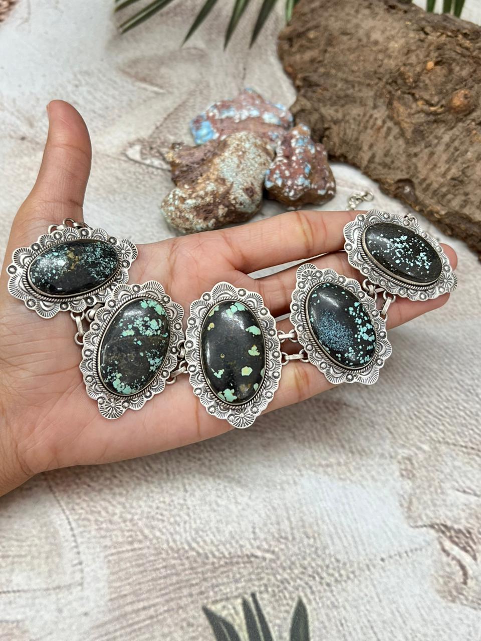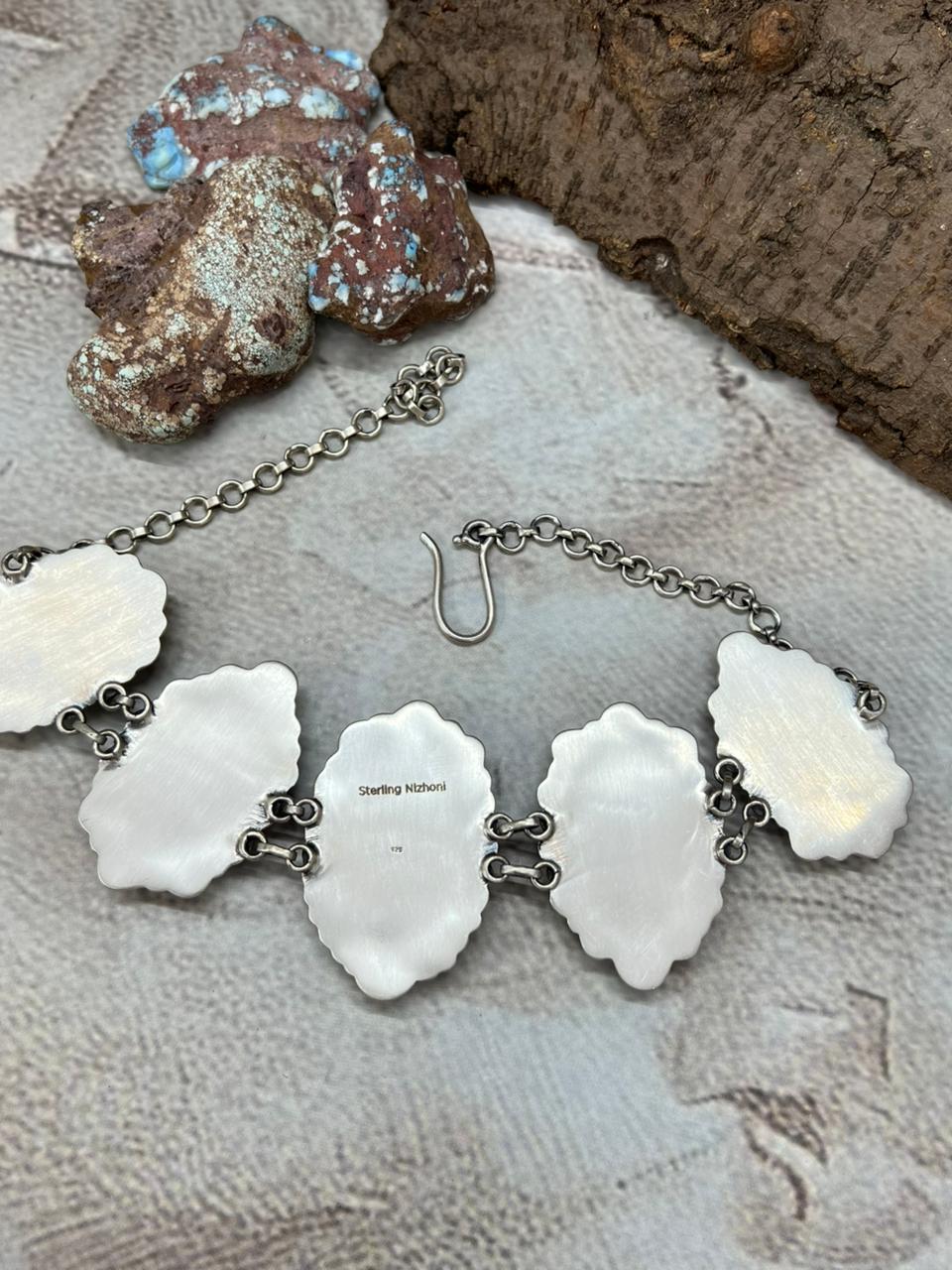 Such gorgeous craftsmanship! Sterling Silver Lander Turquoise Necklace Measures Length 12+4" Extension, Width 1 1/8".