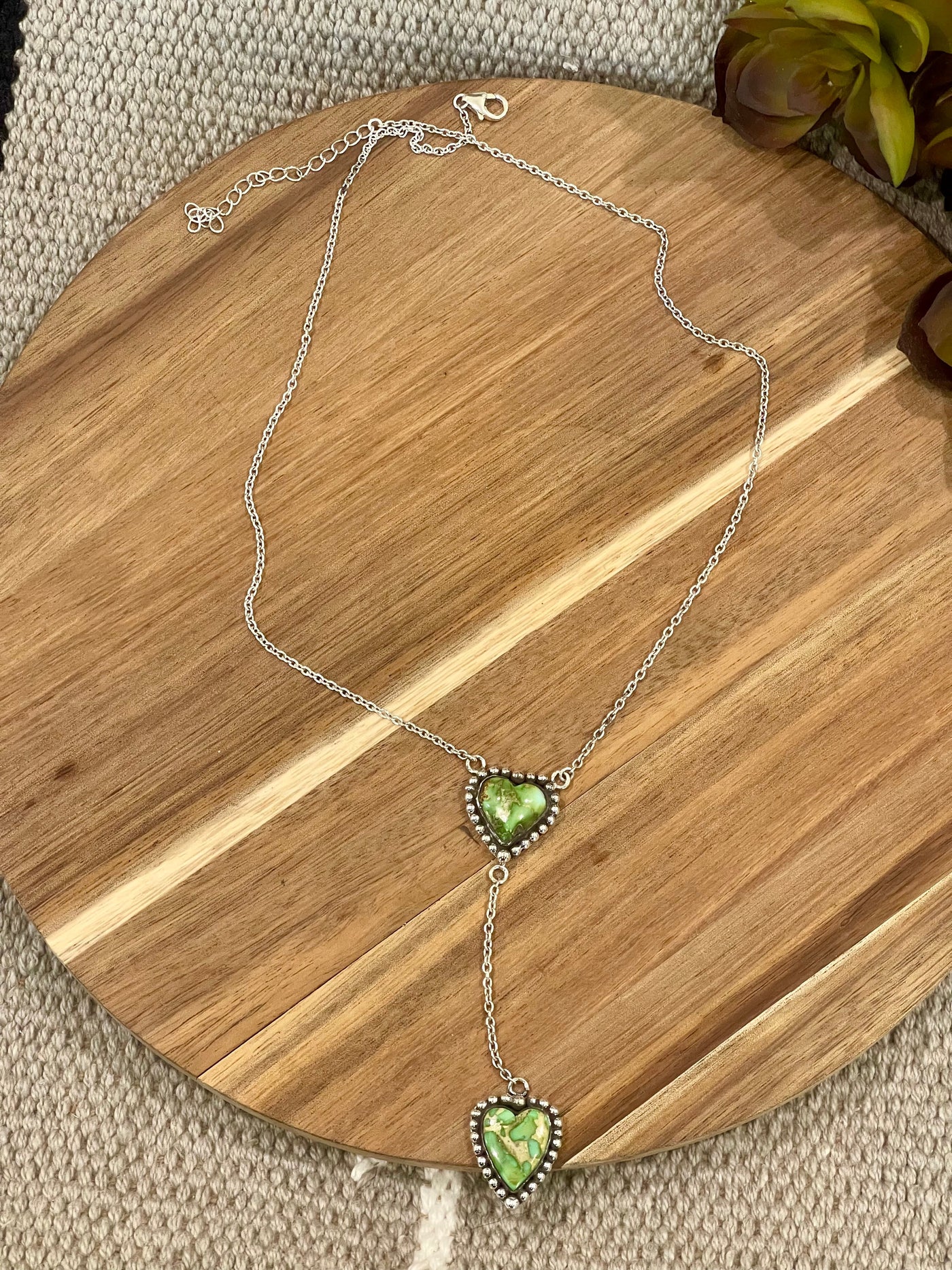 Handmade Sterling Silver & Sonoran Mountain Turquoise 2 Stone Drop Necklace