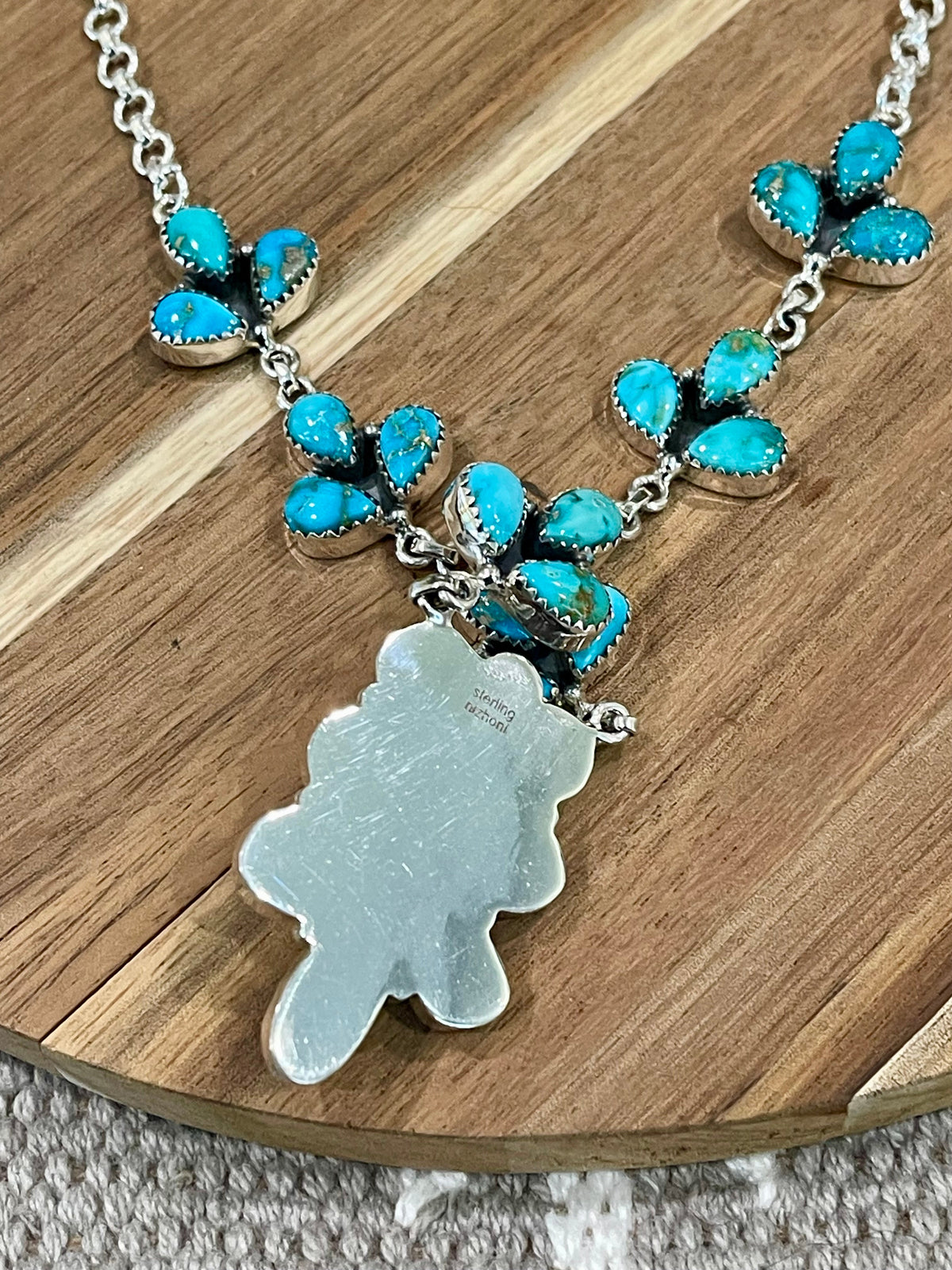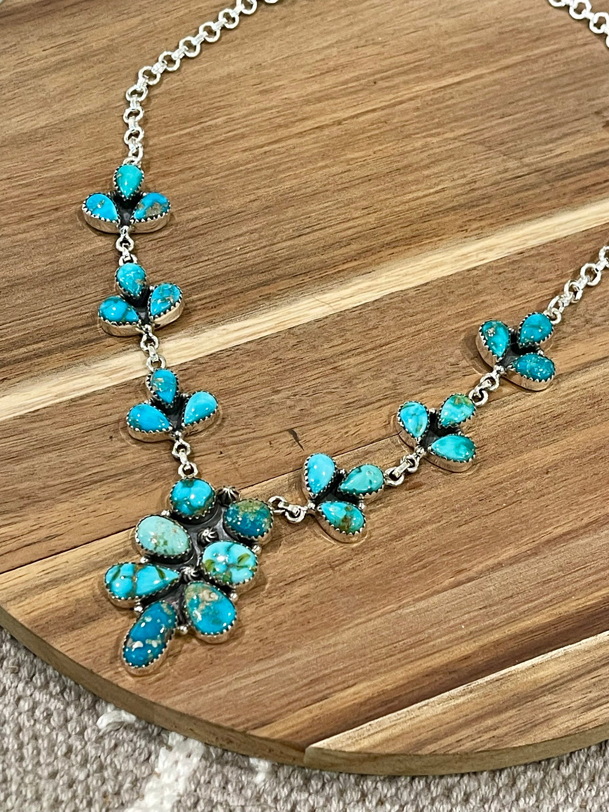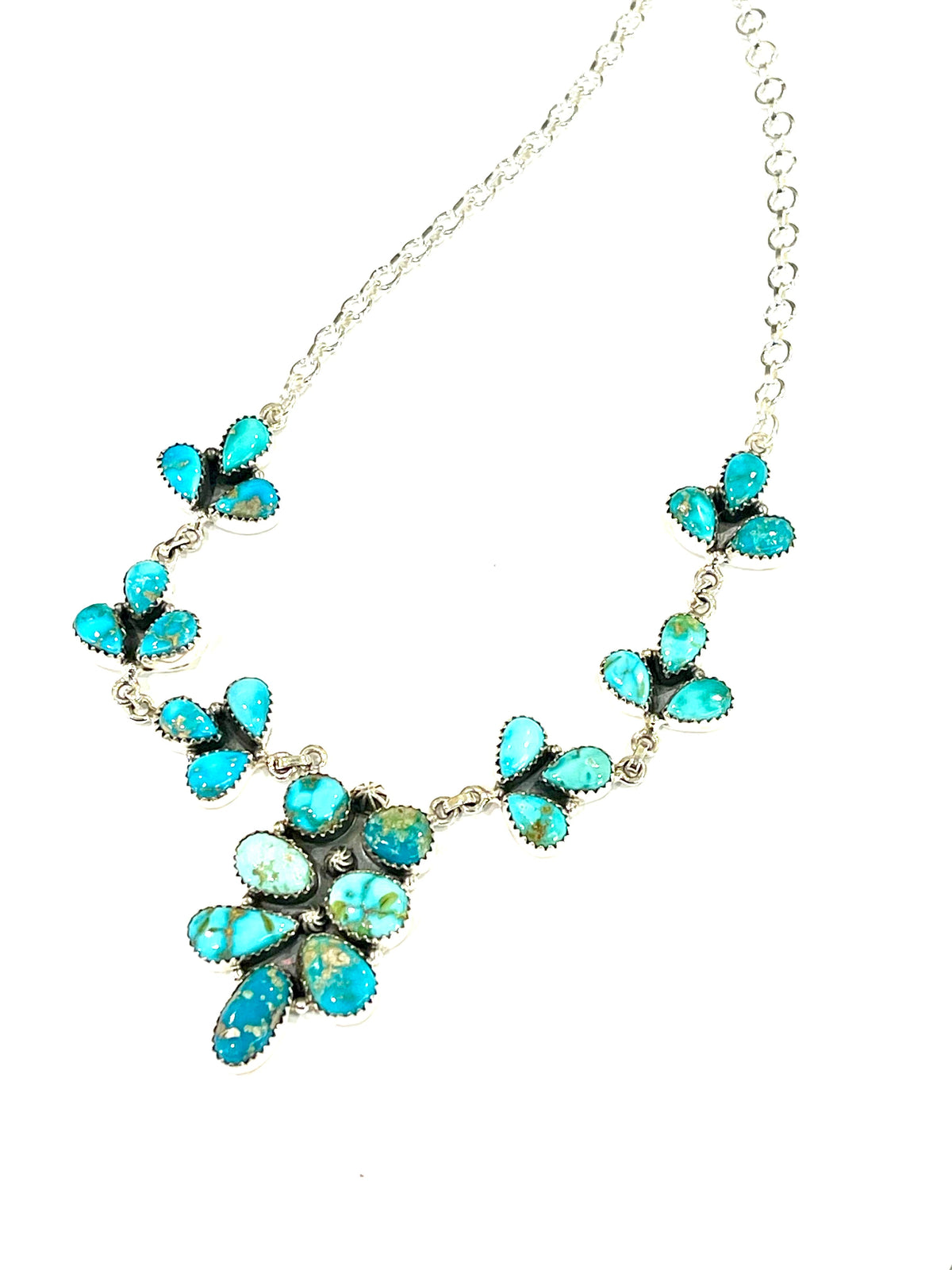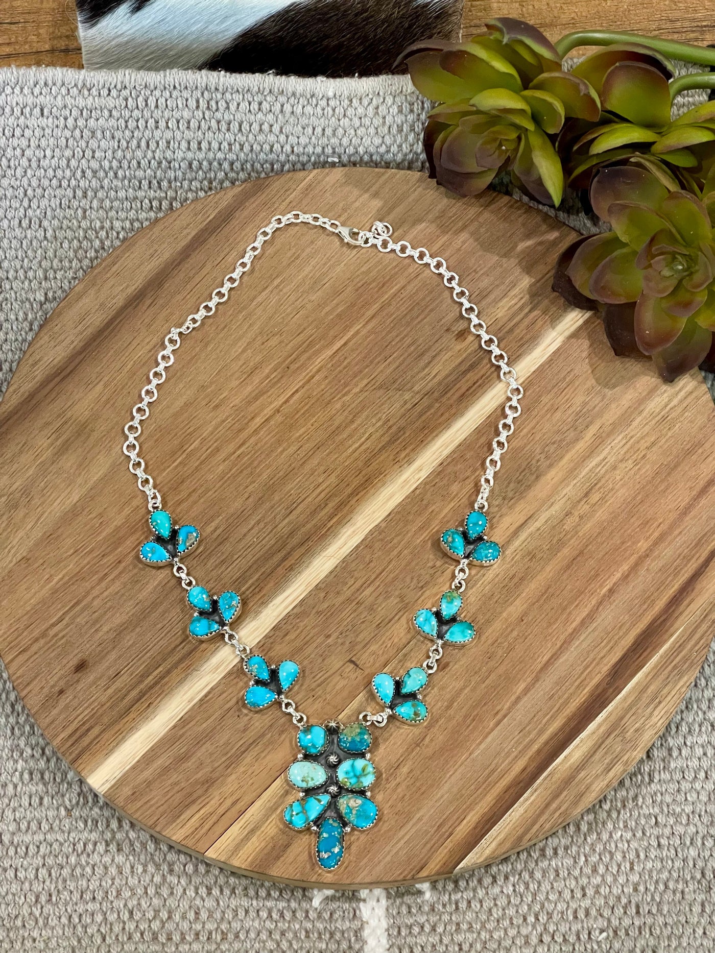Gorgeous Sterling Silver & South Hill Sonoran Turquoise Cluster Necklace. This beauty measures 16 1/2 - 18 1/2 inches long. Add an additional 2 inches for pendant drop.