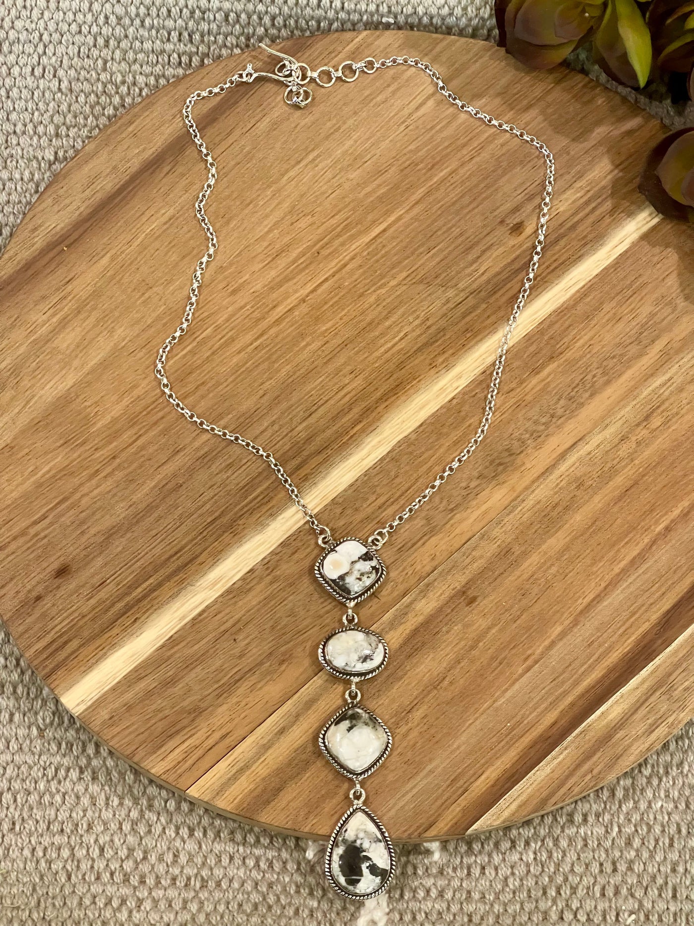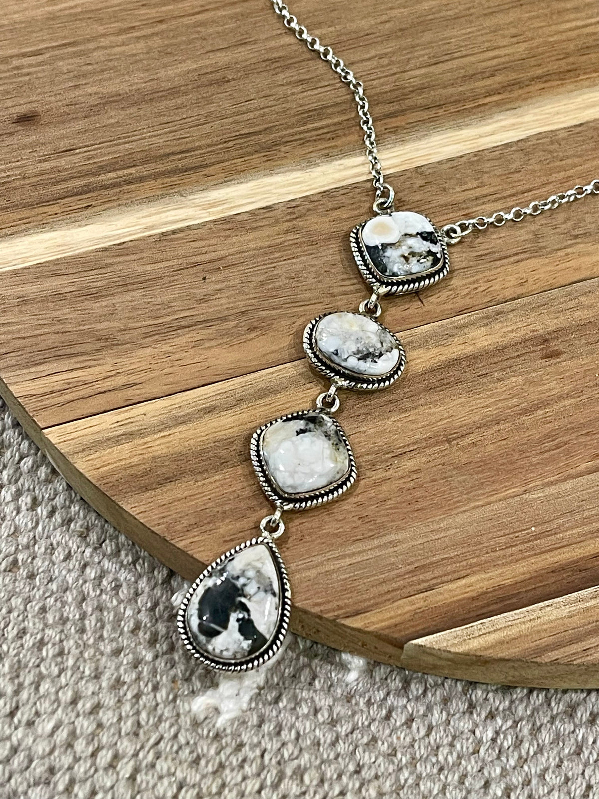 Gorgeous Sterling Silver & White Buffalo Drop Necklace. This beauty measures 18- 20 inches long. Add an additional 3 1/2 inches for pendant drop.