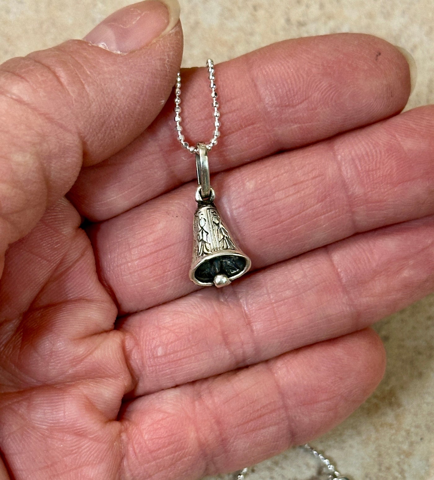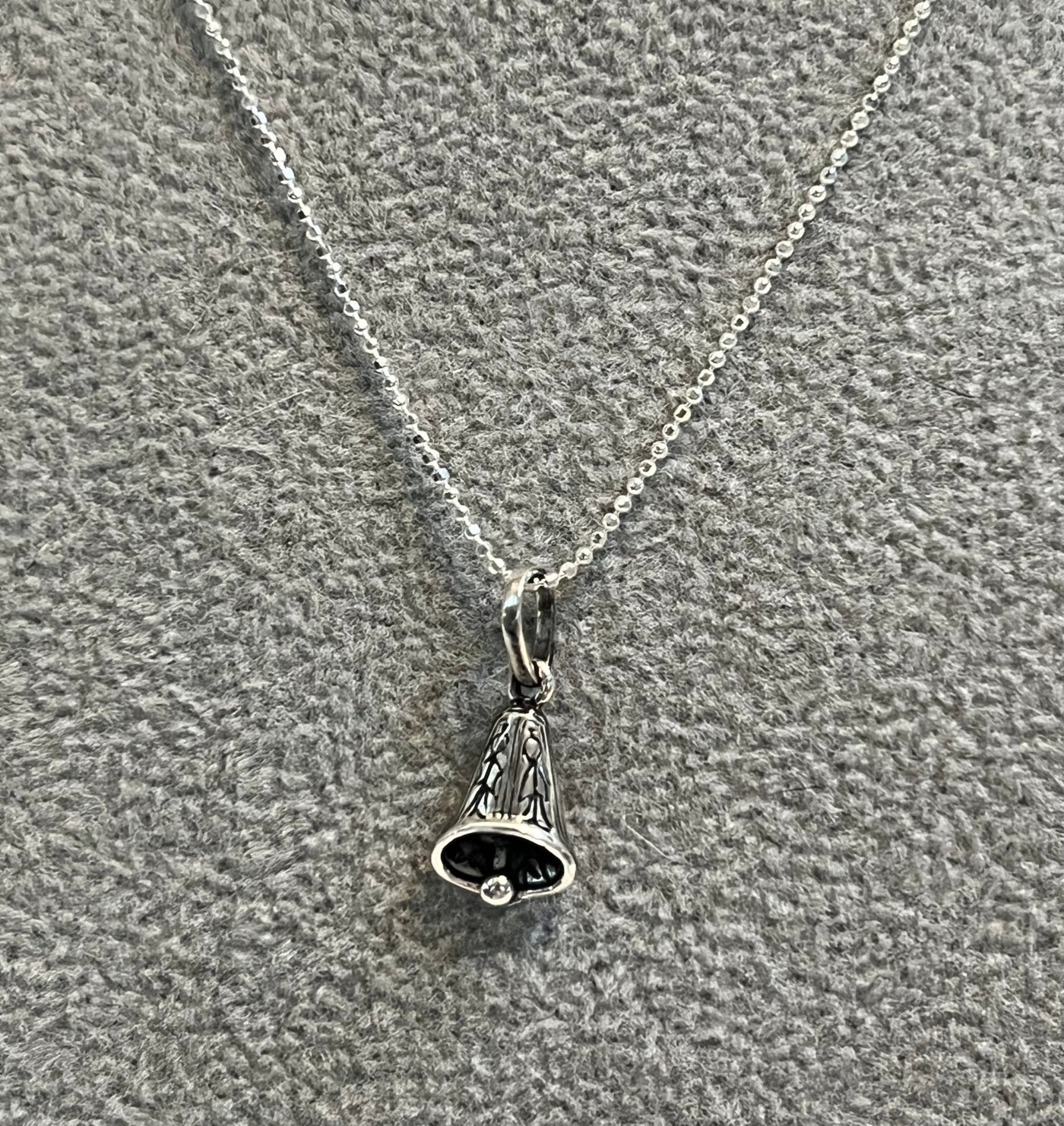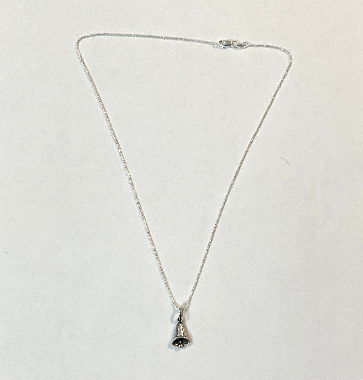 Celebrate the holiday spirit with this charming sterling silver Christmas bell pendant necklace. The beautifully crafted bell features a classic, timeless design that symbolizes joy and festive cheer.