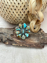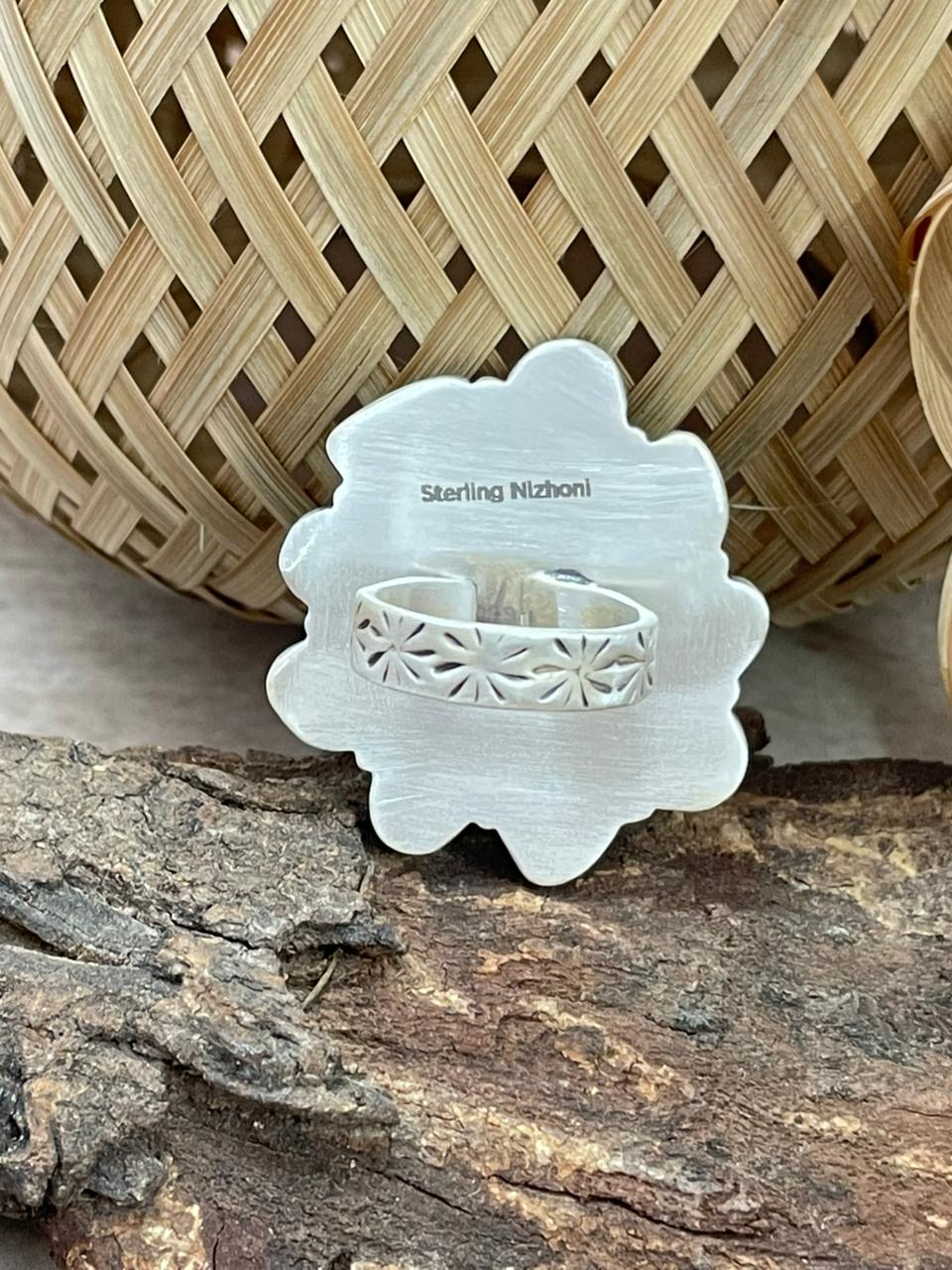 Introducing our latest masterpiece! This stunning Sterling Silver Number 8 Turquoise adjustable ring is a true showstopper. With dimensions of 2" in length and 6/8 " in width, it’s designed to make a bold statement.