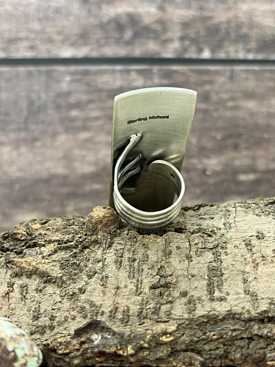 Introducing our latest masterpiece! This stunning Sterling Silver Old Stock Royston Turquoise adjustable ring is a true showstopper. With dimensions of 2 3/8" in length and 1" in width, it’s designed to make a bold statement.