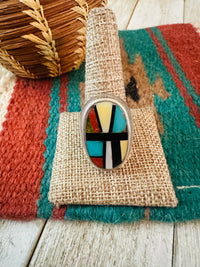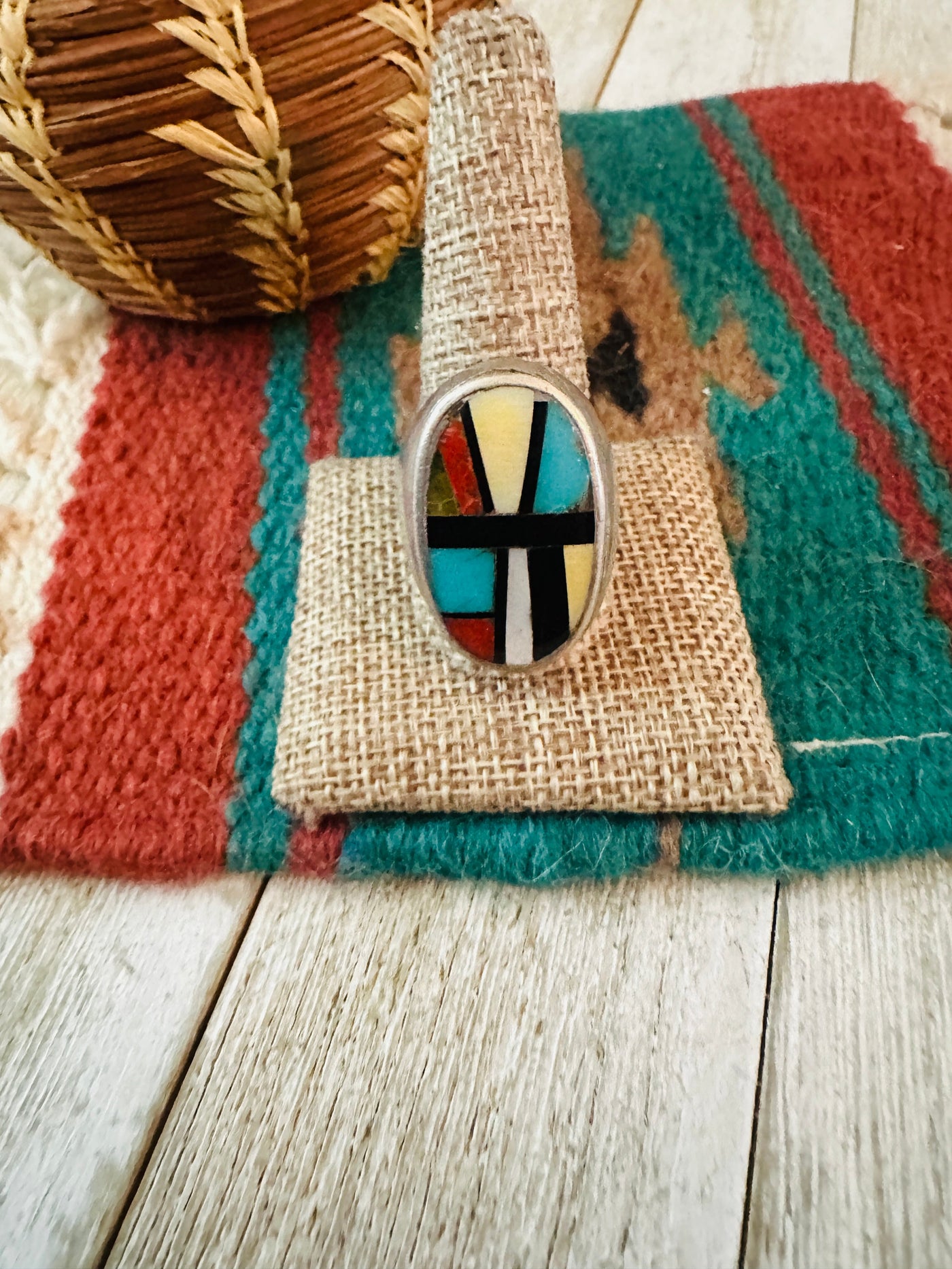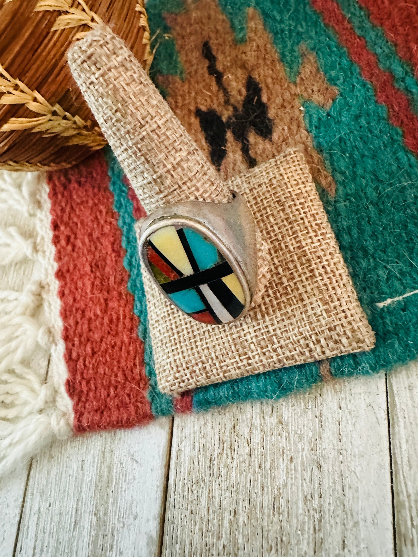 Old Pawn Handcrafted Multi Stone & Sterling Silver Inlay Ring Size 12