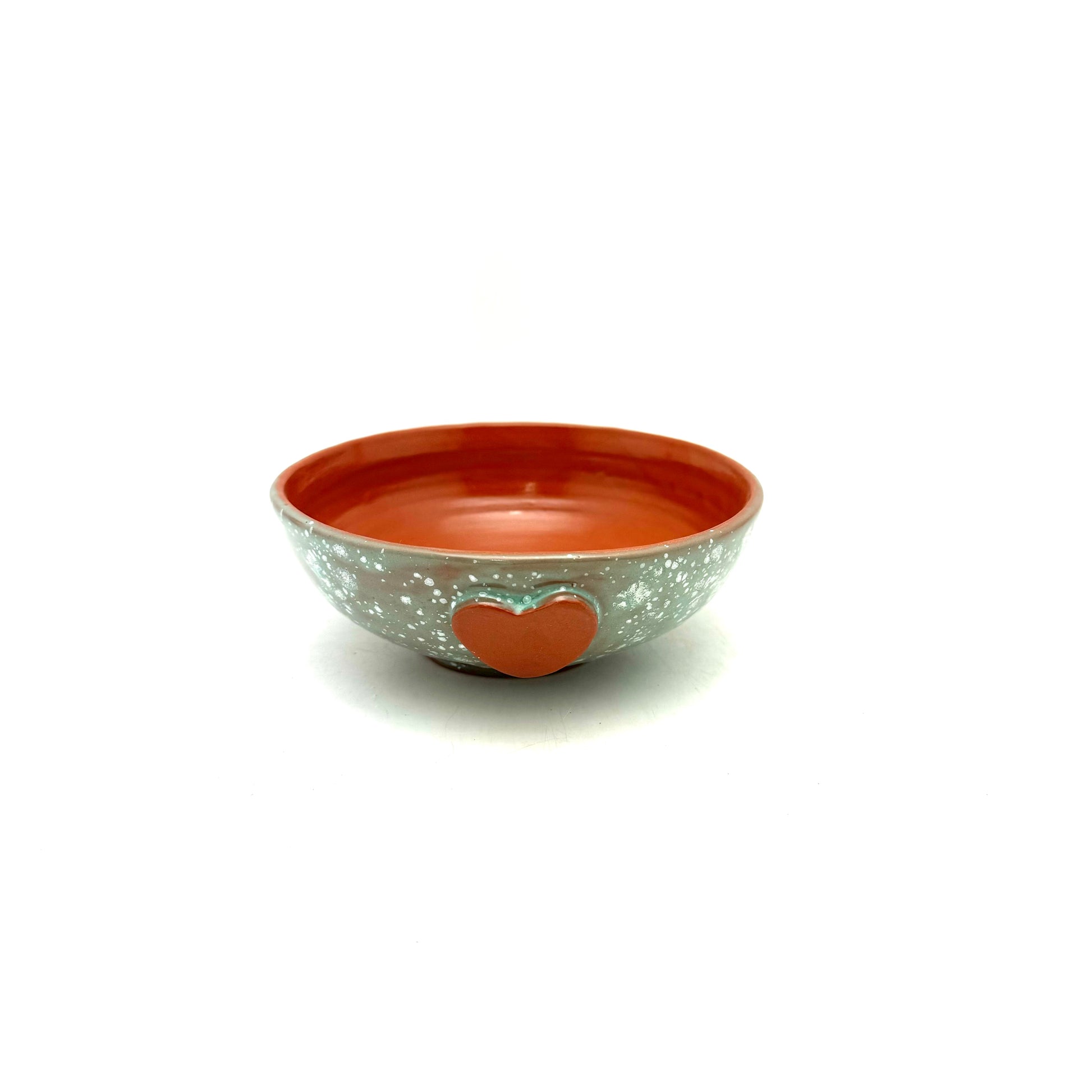Our ceramic heart bowls are slightly smaller than the classic holding about 6 oz of food. Perfect for a side salad or a scoop of ice-cream. Each handmade bowl is kiln fired and finished with food safe, lead free glaze.