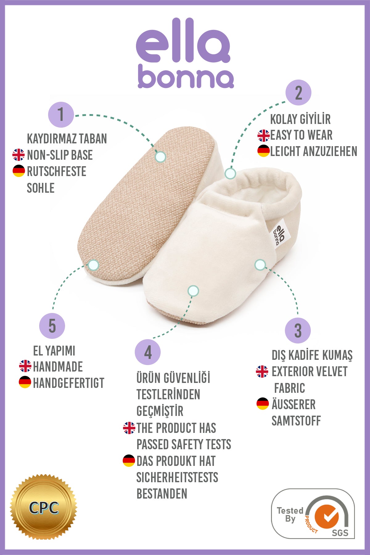 Organic Cotton Velvet Home Nursery Moccasin Shoes, Cream