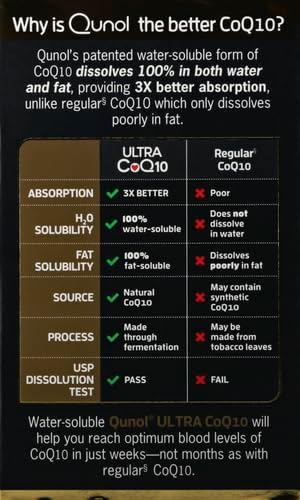 Support your heart, energy, and cellular health with Qunol Ultra CoQ10 100mg, the #1 cardiologist-recommended form of Coenzyme Q10. Backed by clinical studies, this patented supplement delivers 3x better absorption than regular CoQ10 thanks to its 100% water and fat-soluble formula, making it faster and more effective.