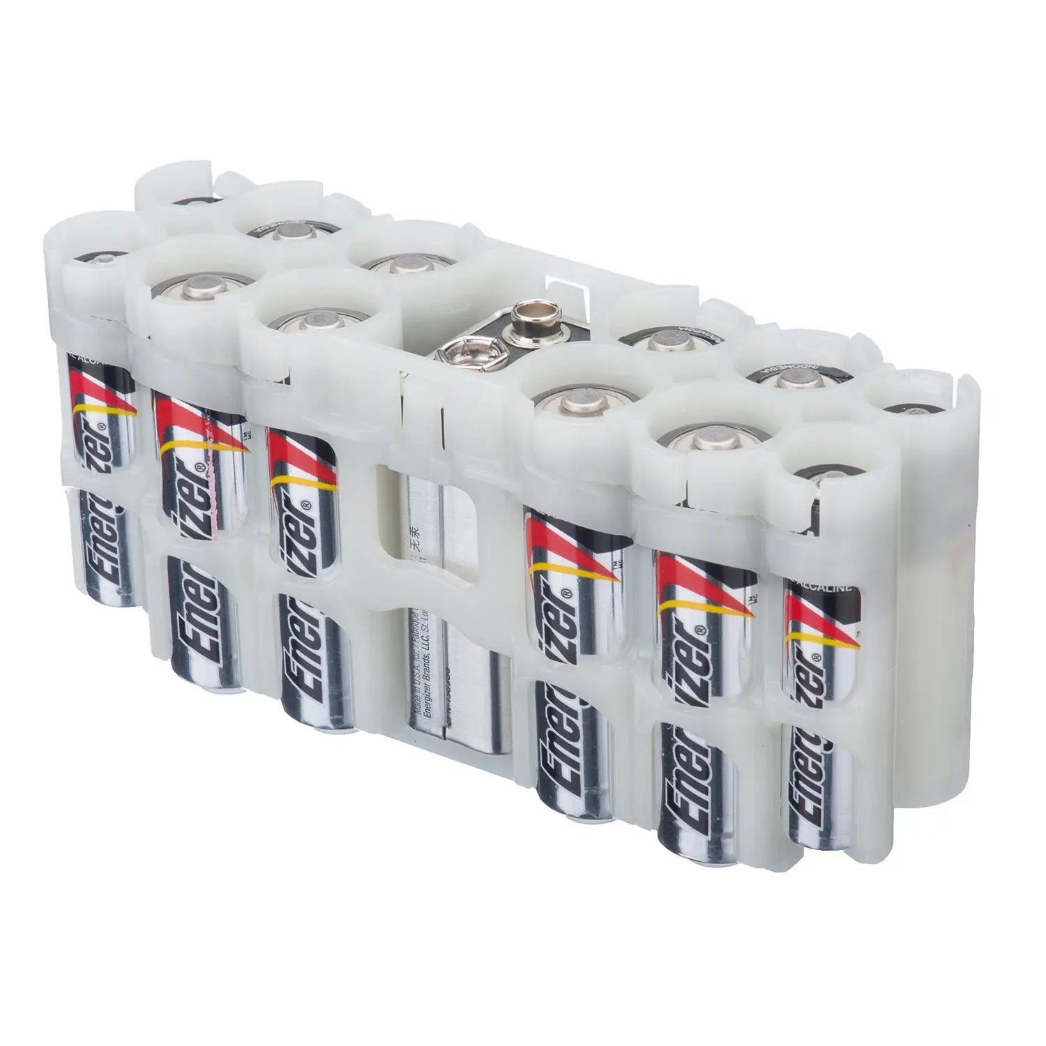 – Holds 8 AA's, 4 AAA's and 1 9V battery. Batteries are not included.– Moonshine caddies glow in the dark for up to 8 hours if exposed to 30 minutes of light.