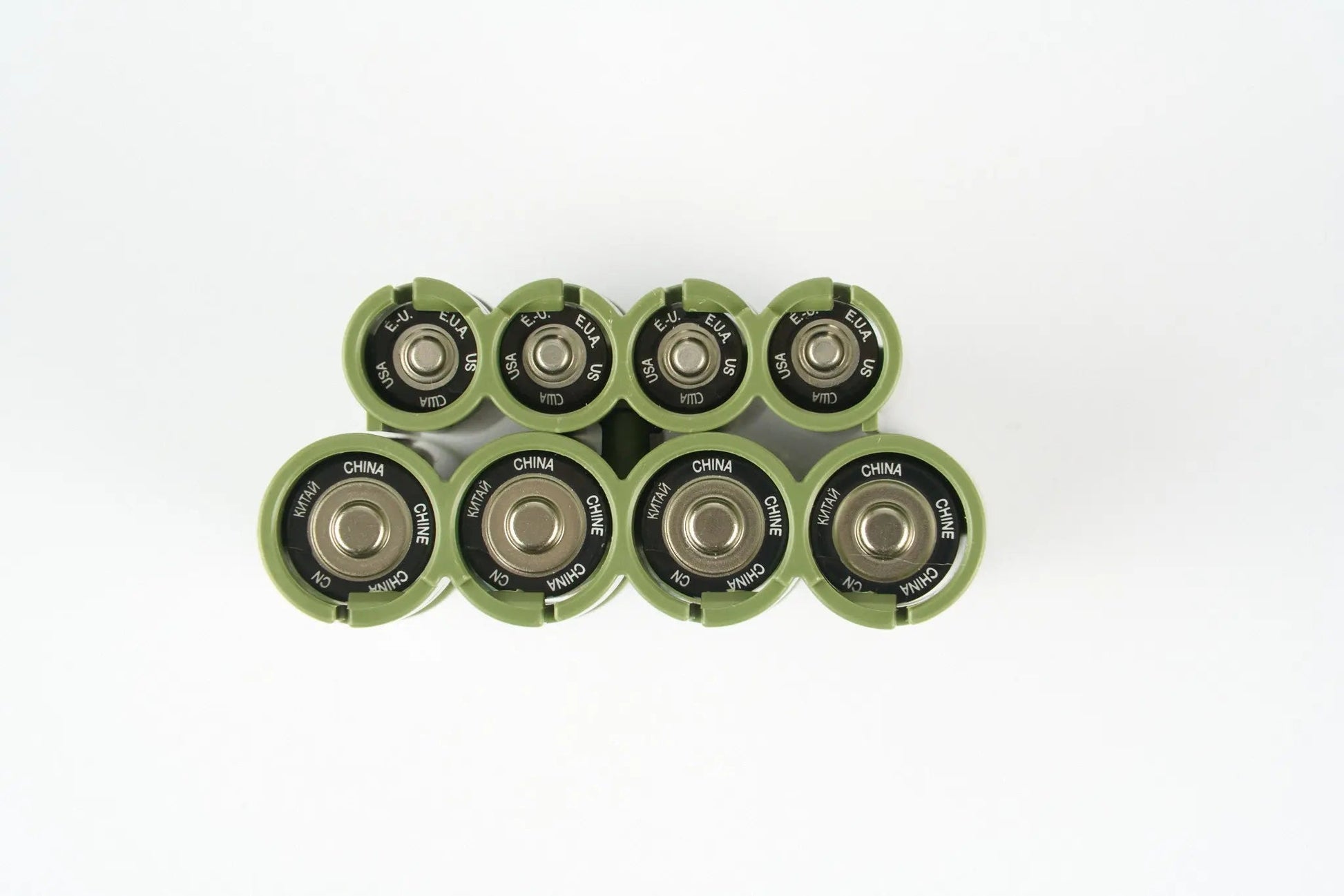 – Holds 4 AA batteries + Holds 4 AAA batteries