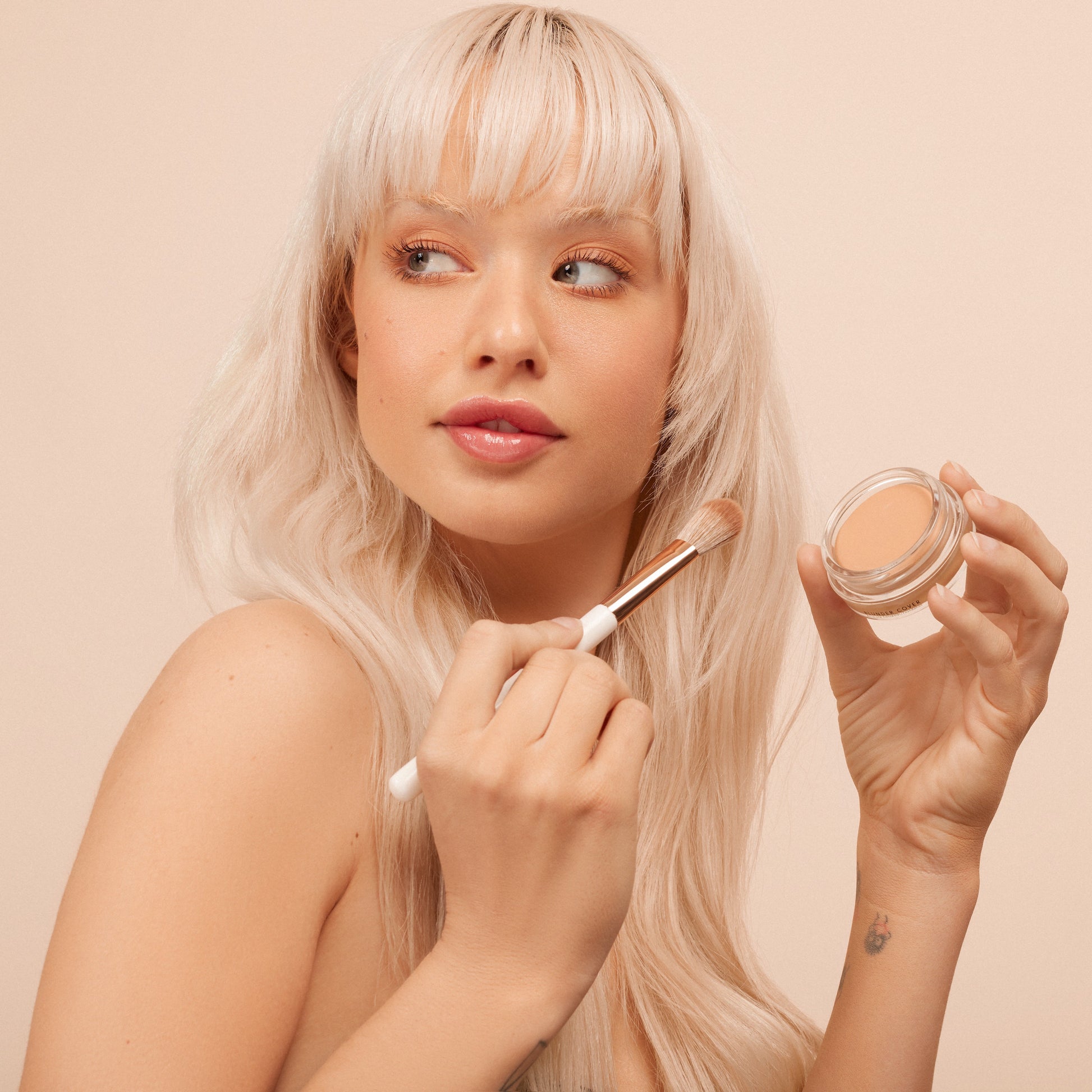Infused with natural botanicals like arnica and edelweiss, and gentle hydrating oils, Blunder Cover is an all–in–one foundation/concealer that can be sheered out and used as a natural, comfortable base, or built up as a concealer in areas that need more coverage, with an always natural skin–like finish. This multi–tasking formula can also be used in lighter/darker shades to highlight and contour.