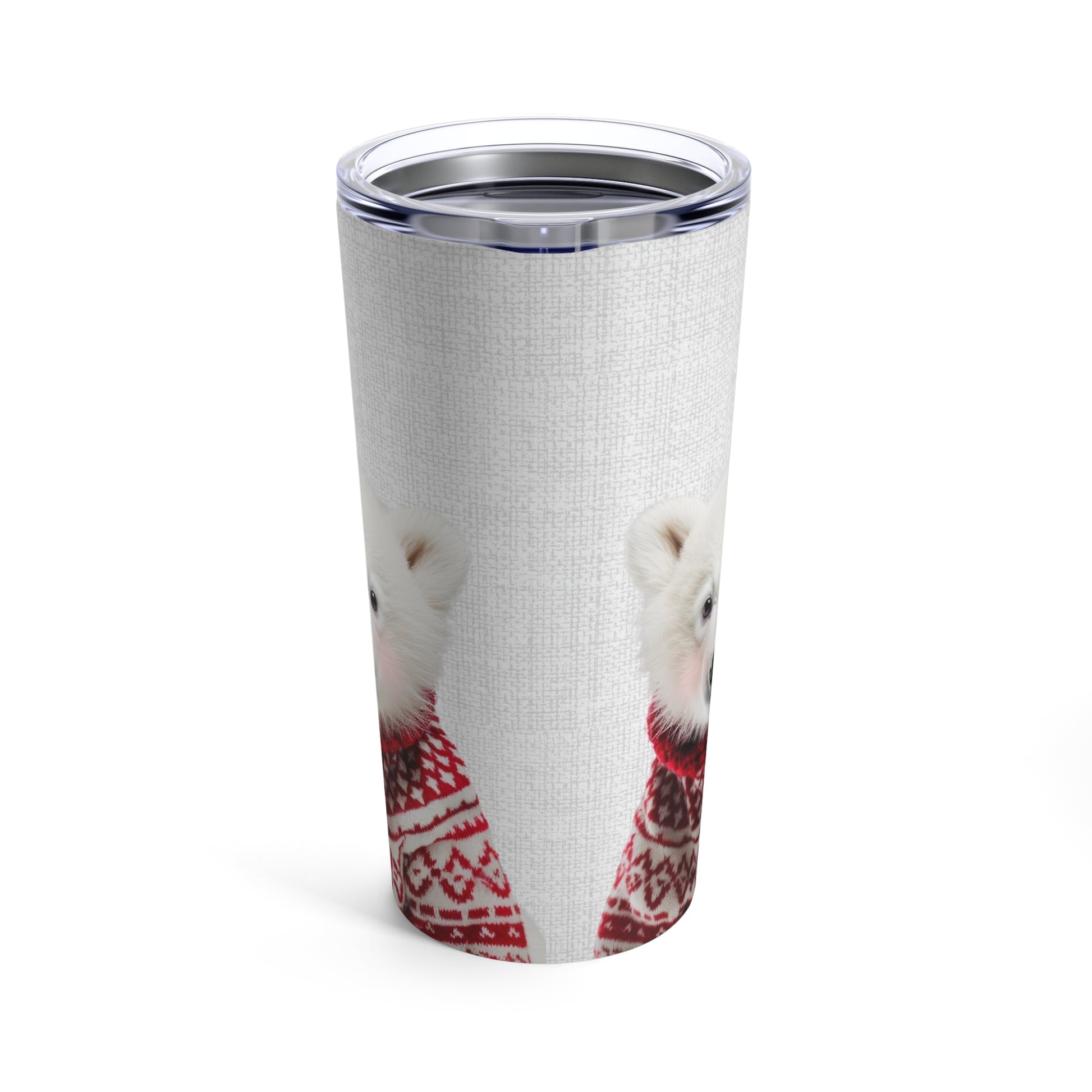 Blushing Polar Bear in Red Sweater Tumbler 20oz