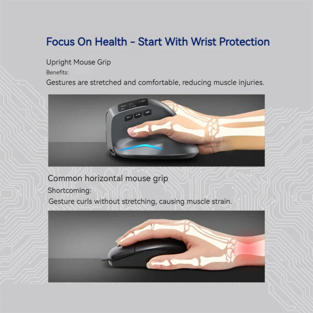 Experience effortless all-day computing with the Dual Mode Wireless Vertical Mouse. Designed for superior comfort and precision, this mouse helps you work longer and smarter. Tired of Wrist Pain? Upgrade to Ergonomic Comfort.