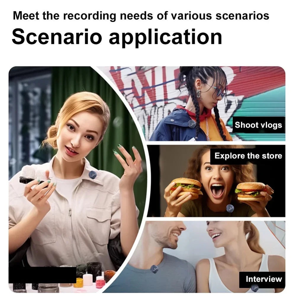 Elevate your audio game with the Duo Wireless Button Mag Mic! This compact, noise-canceling microphone with a charging case offers crystal-clear sound and a 164ft range, perfect for YouTube vlogs, live streams, or professional recordings.