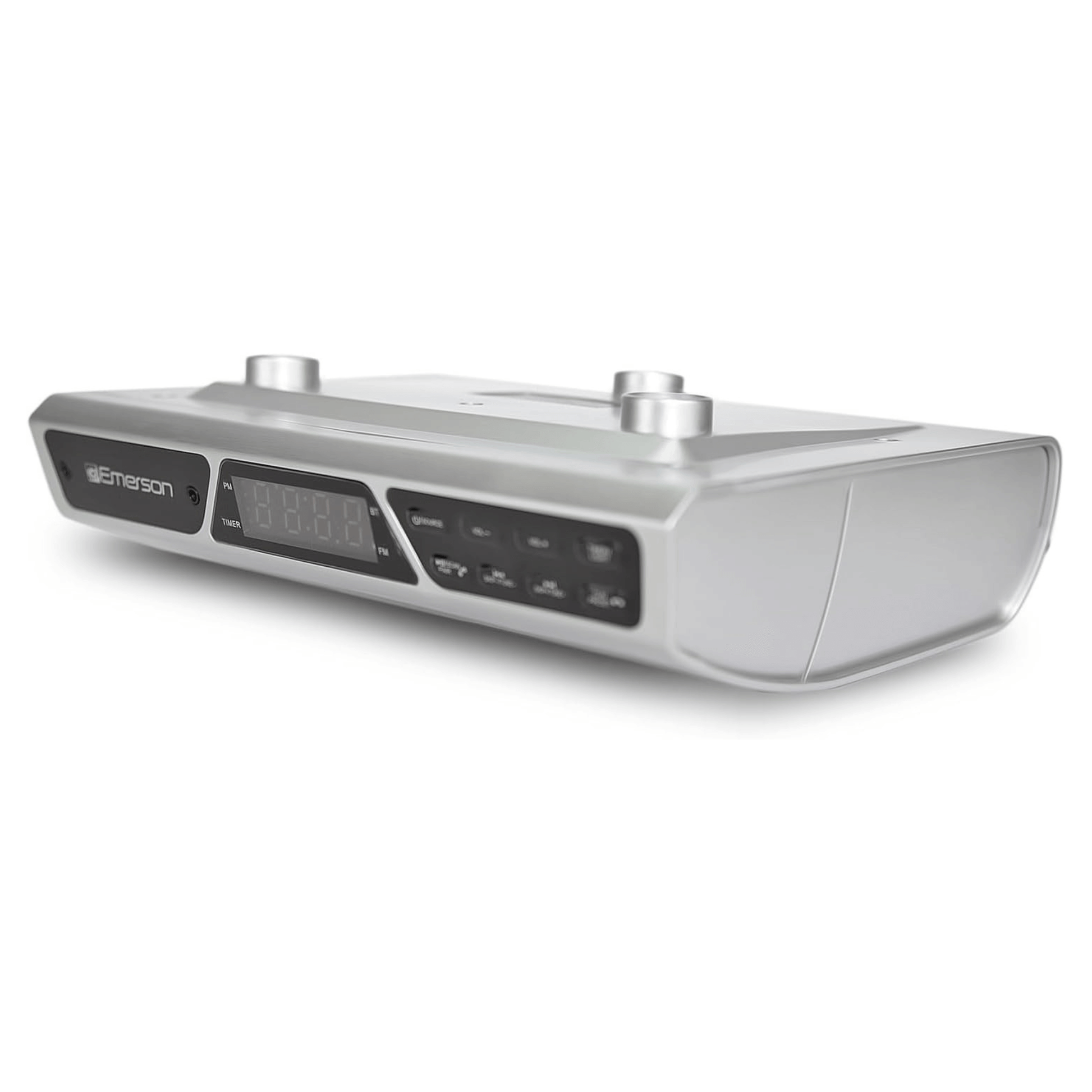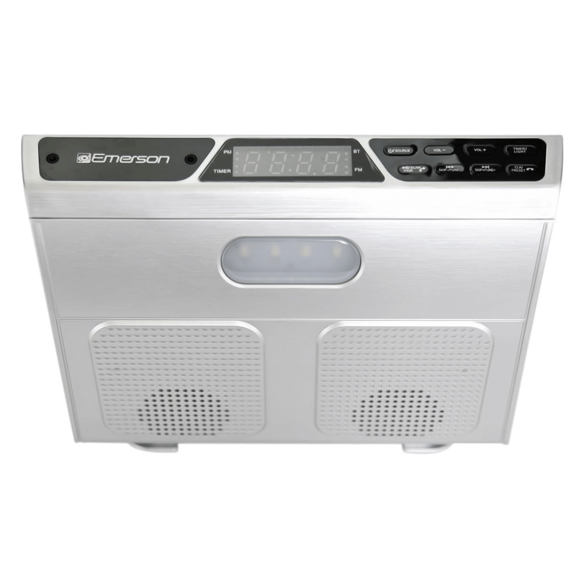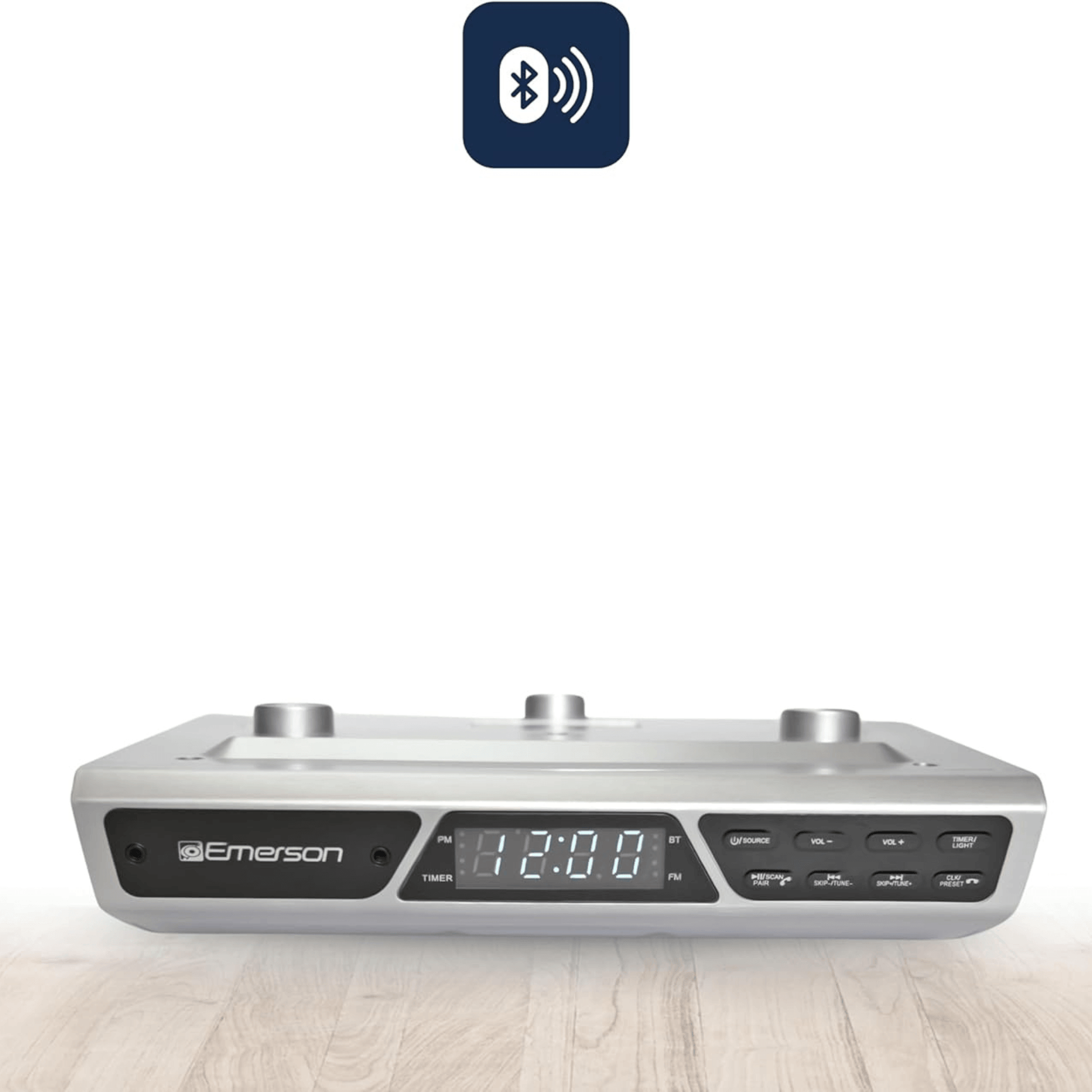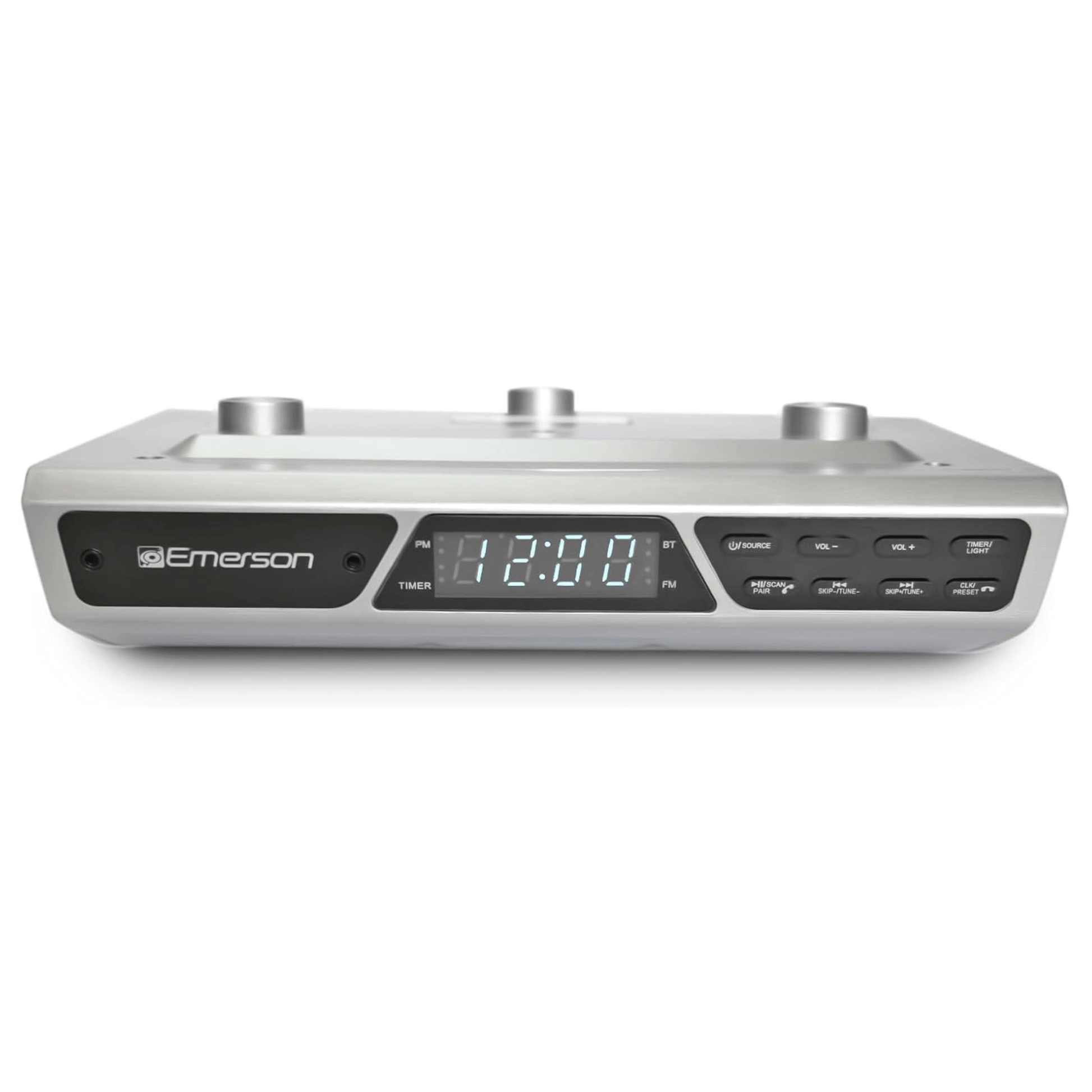 Emerson Under Cabinet FM Radio w Bluetooth, Station Memory and Clock with Timer