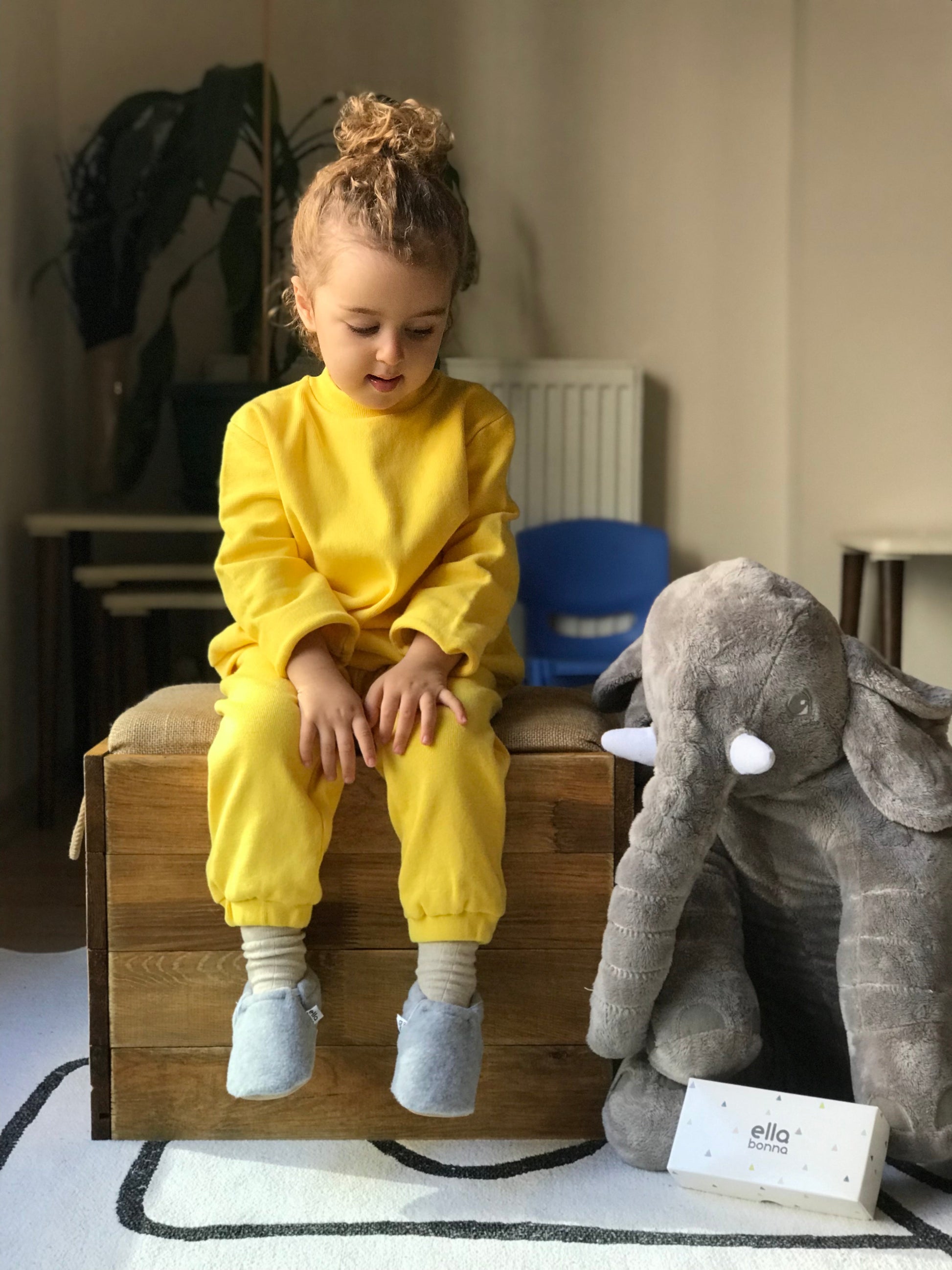 Fleece Baby House Booties, Non-Slip Sole, Organic Cotton Lining, Gray