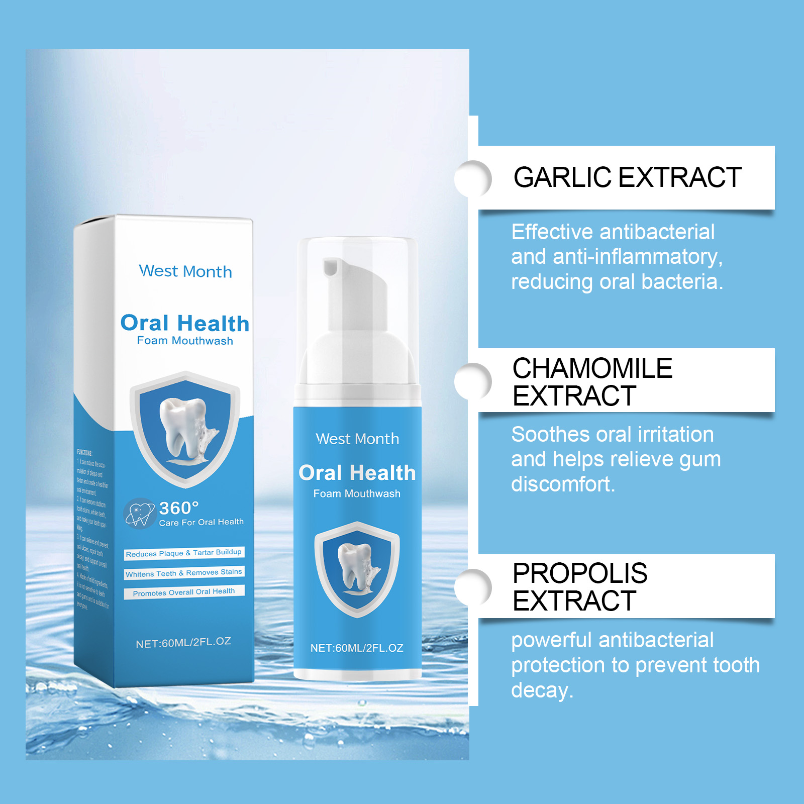 Our foaming mouthwash contains propolis extract, peppermint extract. It can be effective antibacterial ingredients to help remove plaque on the surface of the teeth and keep the mouth clean. Its use method is very simple: take the right amount of this product, squeeze it into your mouth, spit the foam in your mouth for 30-60 seconds, and spit out the foam. It also prevents bacteria from eating away at your teeth and reduces the risk of cavities.