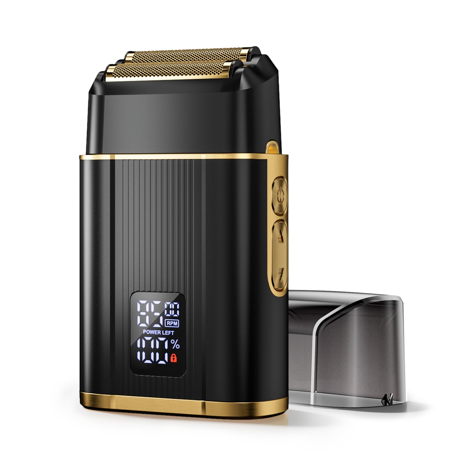 Foil Shavers for Men, High Speed Double Floating Blades Electric Razor, IPX6 Waterproof Dry/Wet, 2 Adjustable Speed Electric Shaver with LED Display, USB-C Deep Black