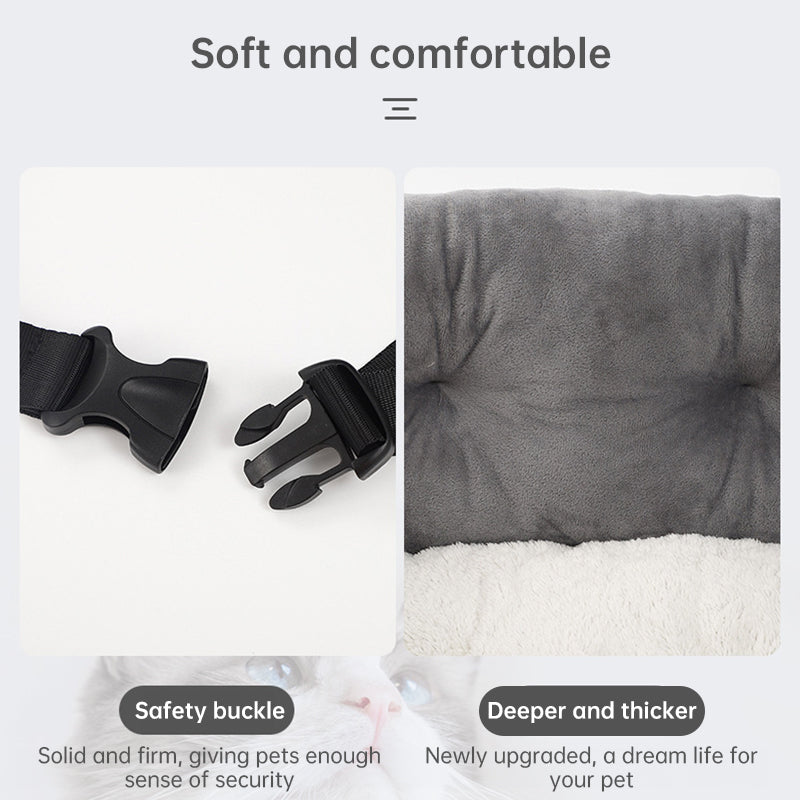 Portable, washable pet car seat bed booster pad with storage bag, suitable for small dogs and cats.