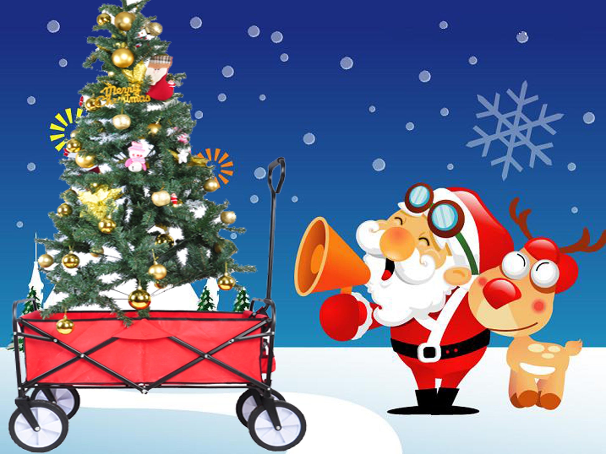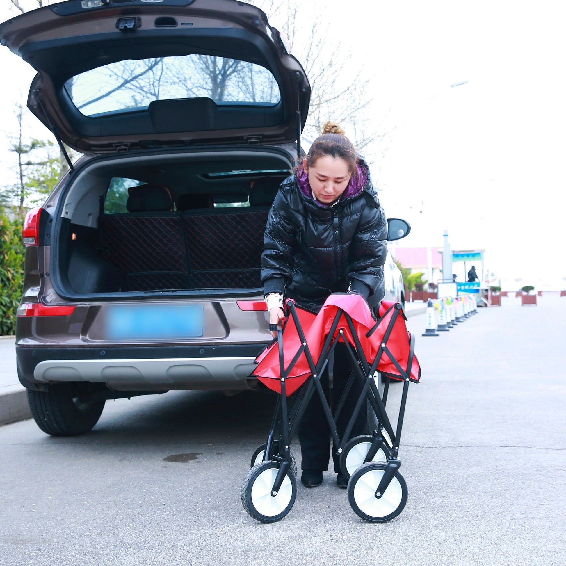 Folding Wagon Garden Shopping Beach Cart (Red)