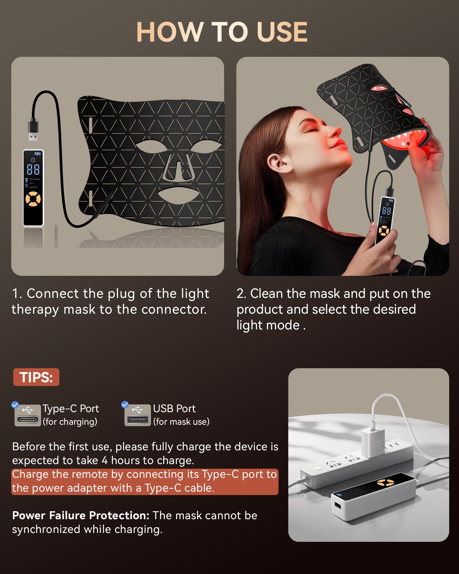 ❤️Easy to Use: Simply connect the mask's plug to the controller, select your desired light mode, and you're ready to enjoy a professional skincare treatment. Before first use, please fully charge the device - estimated charging time is 4 hours!