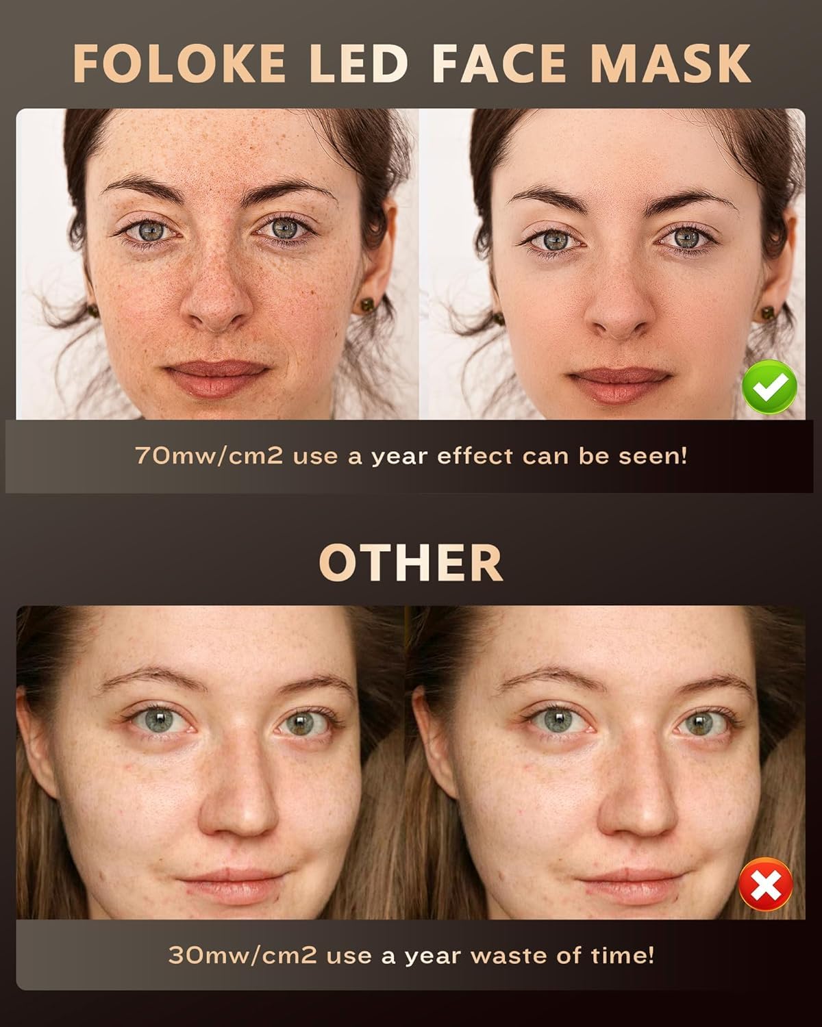 ❤️ Facial Red Light Therapy Mask: This LED light therapy facial mask allows you to choose the optimal wavelength for your skin's needs, offering red light therapy to rejuvenate and repair your skin. Red light 630nm and Near Red light 830nm are the best combination of wavelengths for treatment.