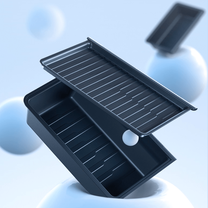 A: Absolutely. The Tesla Model Y underseat storage box is made from soft, waterproof TPE material that can be directly rinsed with water and wipes dry instantly. It's also quiet while driving.