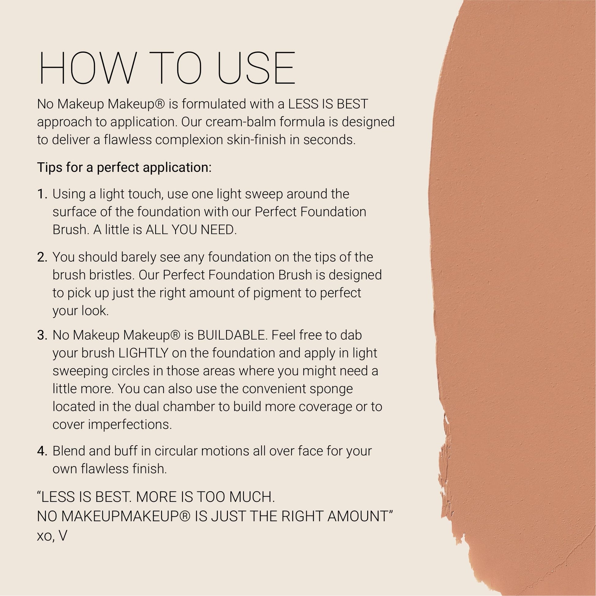 ONE-STEP FOUNDATION: This unique weightless 4-in-1 formula conceals, corrects, camouflages and diffuses in a single-step, functioning as color-corrector, redness-corrector, concealer and foundation in one. Designed for you to apply-and-go in seconds, NO MAKEUP MAKEUP has built-in mistake-proof functionality, finally making foundation application EASY and FLAWLESS. Choose Almond if you normally wear deeper medium shades or Almond.