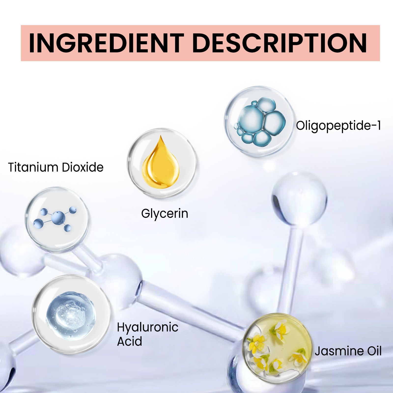 Our foundation serum contains jasmine oil and glycerin. It can help restore elasticity and firmness to the skin, improve appearance and make you look younger. The way to use it is simple: 1. Shake the bottle before use. 2. Take proper amount of essence drop on palm, dip in foundation brush or sponge, and apply on face. 3. Start at the center of your face and work outward in even circles. And contains hydrating hyaluronic acid, deep moisturizing, plump skin, reduce skin dryness and fine lines. In addition, the serum provides effective coverage to conceal dark spots, wrinkles and fine lines, thus smoothing and even skin tone.