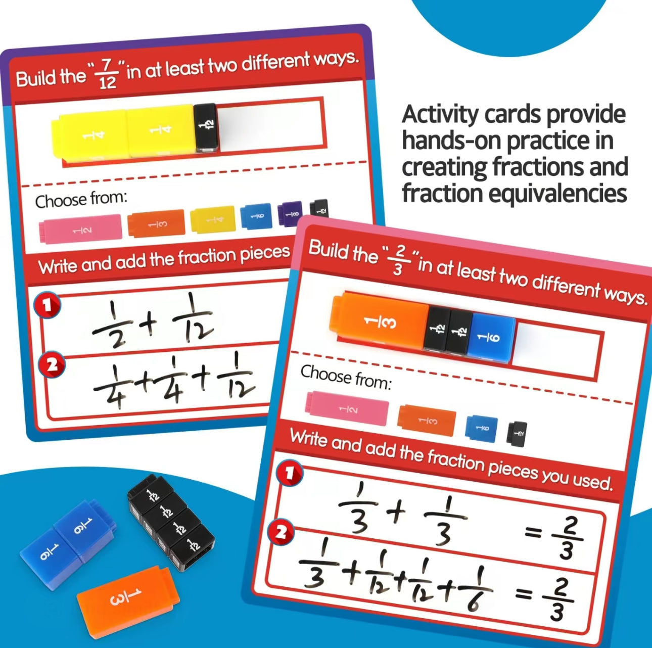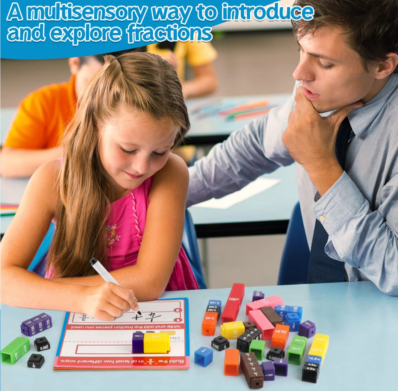 📚 Build Math Skills Designed to help students grasp fractions, decimals, and percentages through interactive play. The set encourages children to explore and master math concepts with 51 colorful fraction cubes and 10 activity cards.