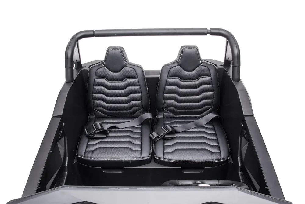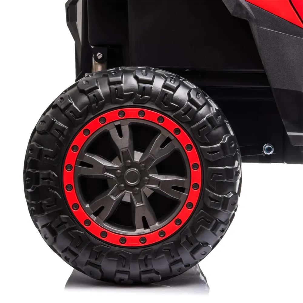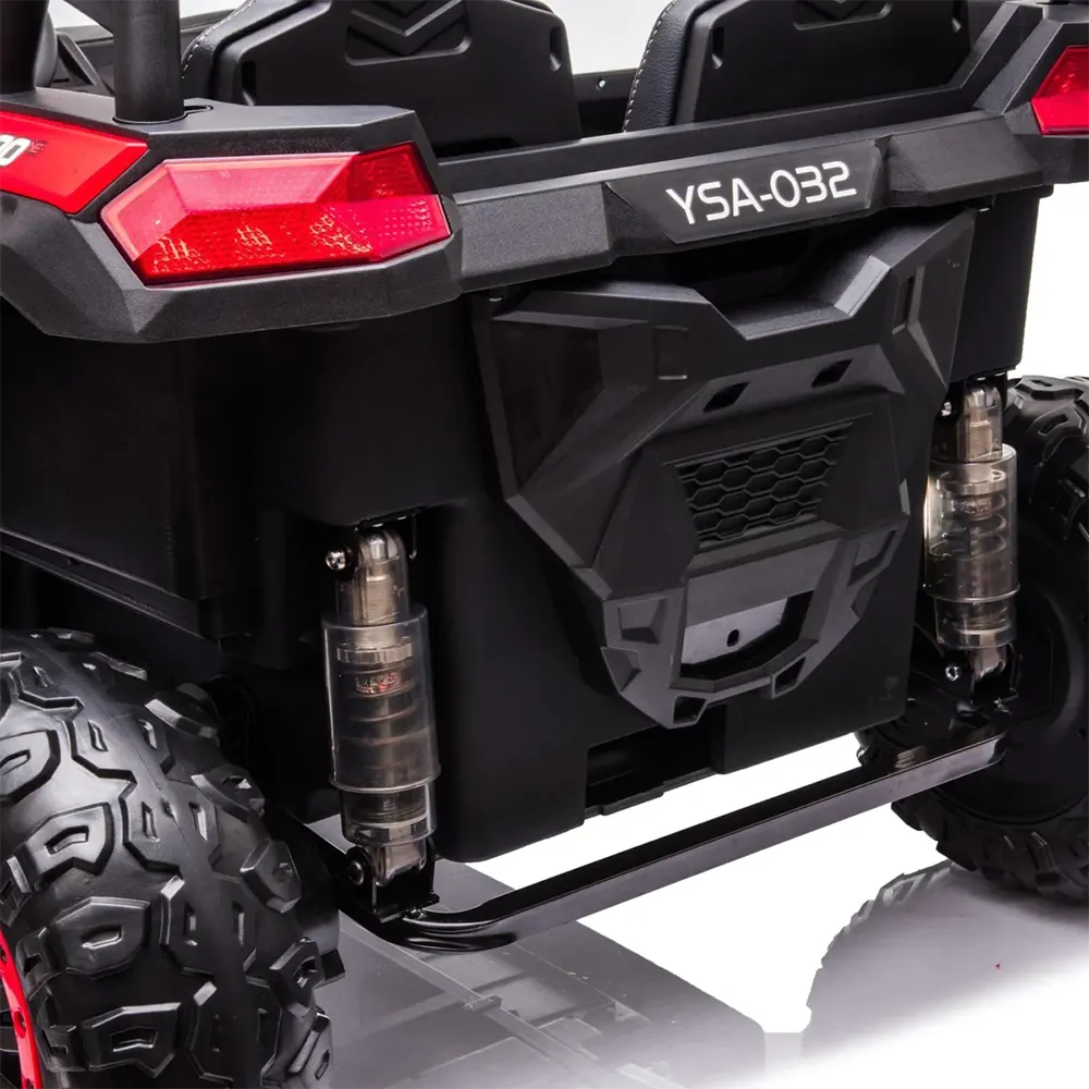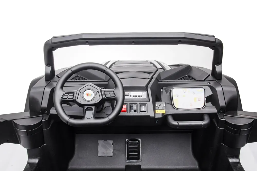 This model shines in the desert, no doubt! Its powerful 24V battery supports two kids up to 132lbs. With EVA tires, suspensions, and versatile terrain navigation, it conquers any ground effortlessly. Equipped with seat belts, parents can relax with the remote control. It offers two seats, enabling shared adventures. Your child's best travel companion plays your favorite music via the built-in mp3 player, enhancing the fun-filled journey. Get ready for an exhilarating driving experience like never before!