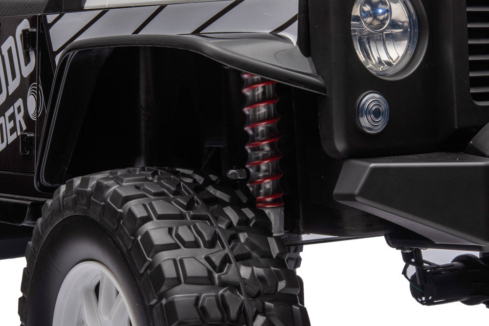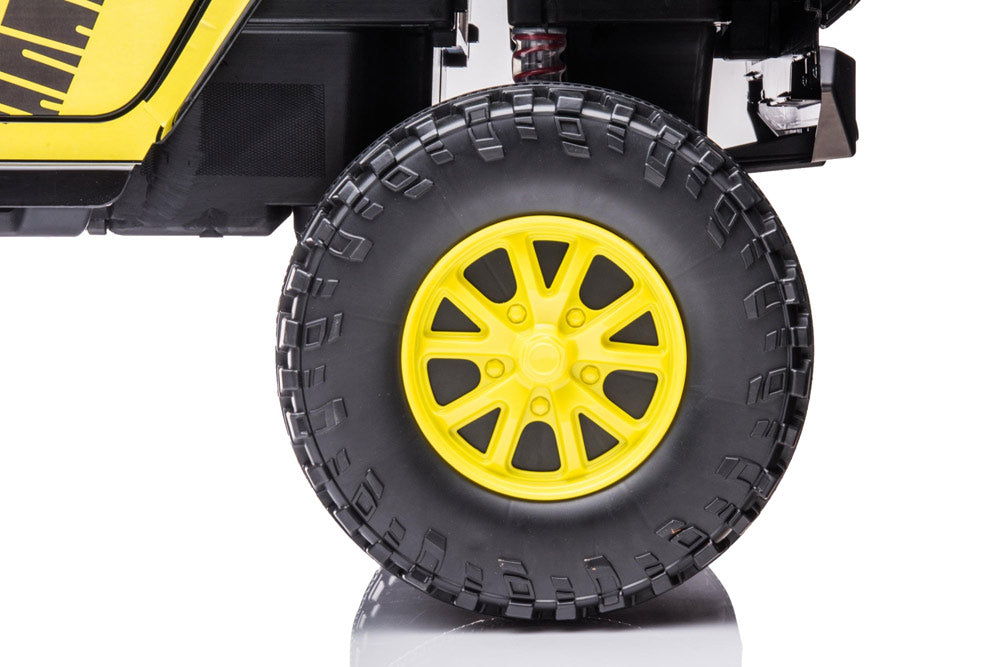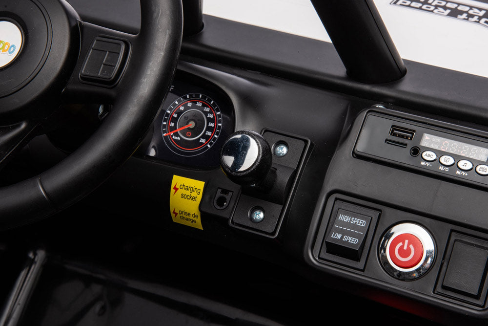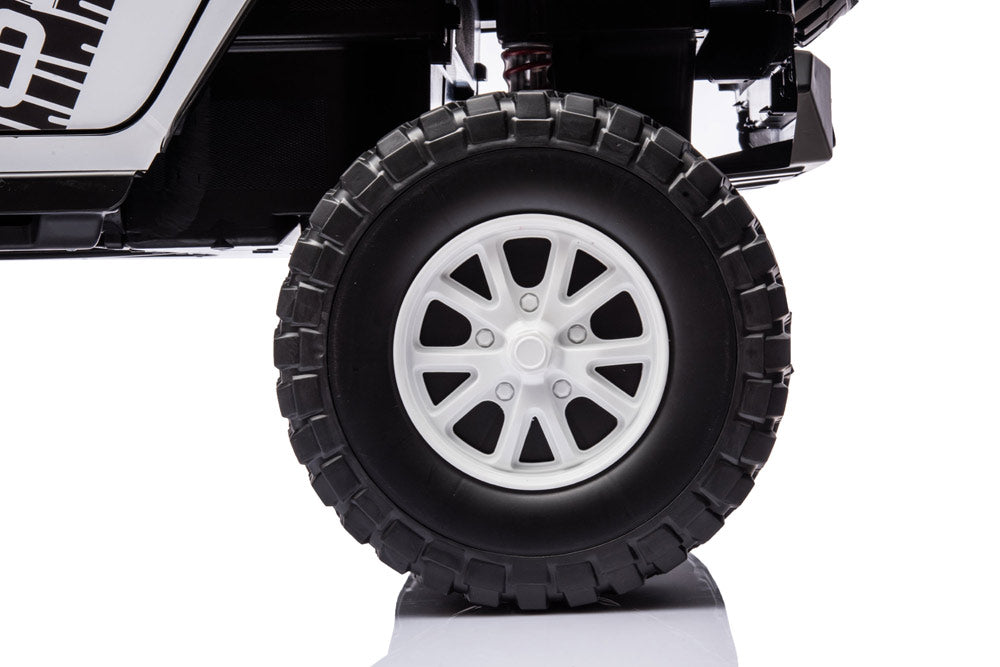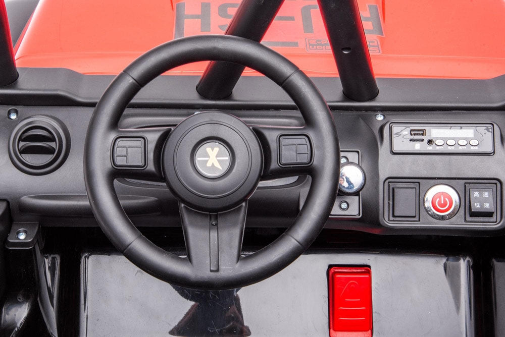 The long-awaited new Jeep has arrived! This complete and powerful ride-on electric go kart from Freddo Toys features two leather seats, remote control, music player, and LED lights. With its bold design and pull bar, it stands out from the crowd. Suitable for children aged 3-8, it can support up to 110 lbs. Get ready for action! This is truly an all-terrain vehicle.