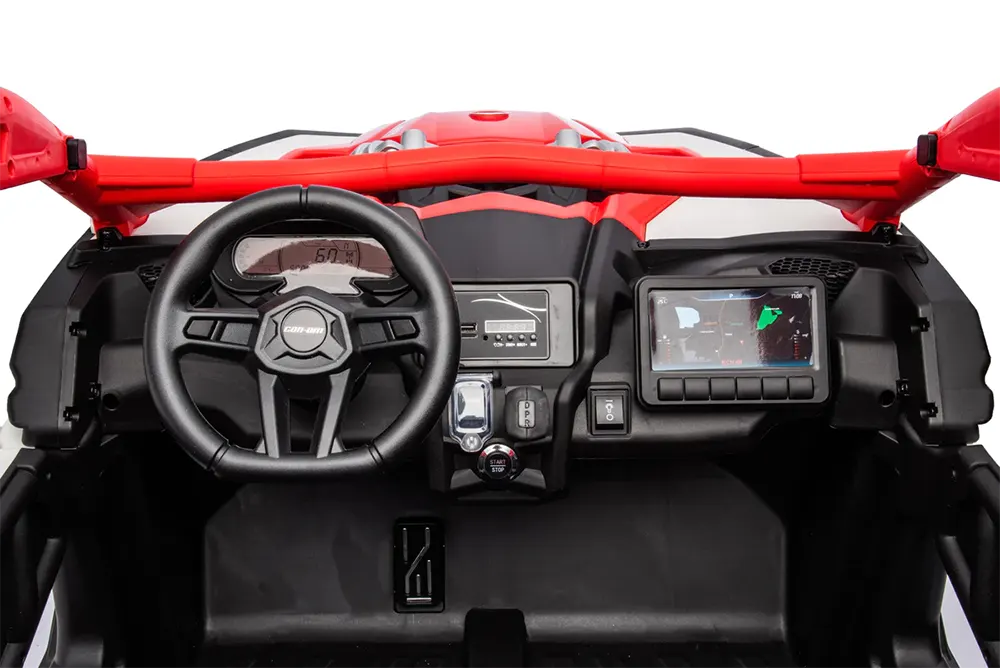 Experience the ultimate family adventure with the 24Vx2 4x4 Can Am Maverick 2 Seater Ride on UTV electric go kart for Kids! This thrilling ride-on vehicle ensures a safe and exhilarating journey for your little ones. With EVA tires for a smooth ride, LED lights for enhanced safety, and a parental remote control for speed control, fun is guaranteed. Jam to your favorite tunes using the Mp3, USB, and Aux-in feature while your child enjoys the comfort of the leather seat. Prepare your little one for an unforgettable adventure with the 24Vx2 4x4 Can Am Maverick and create lasting memories for the entire family!