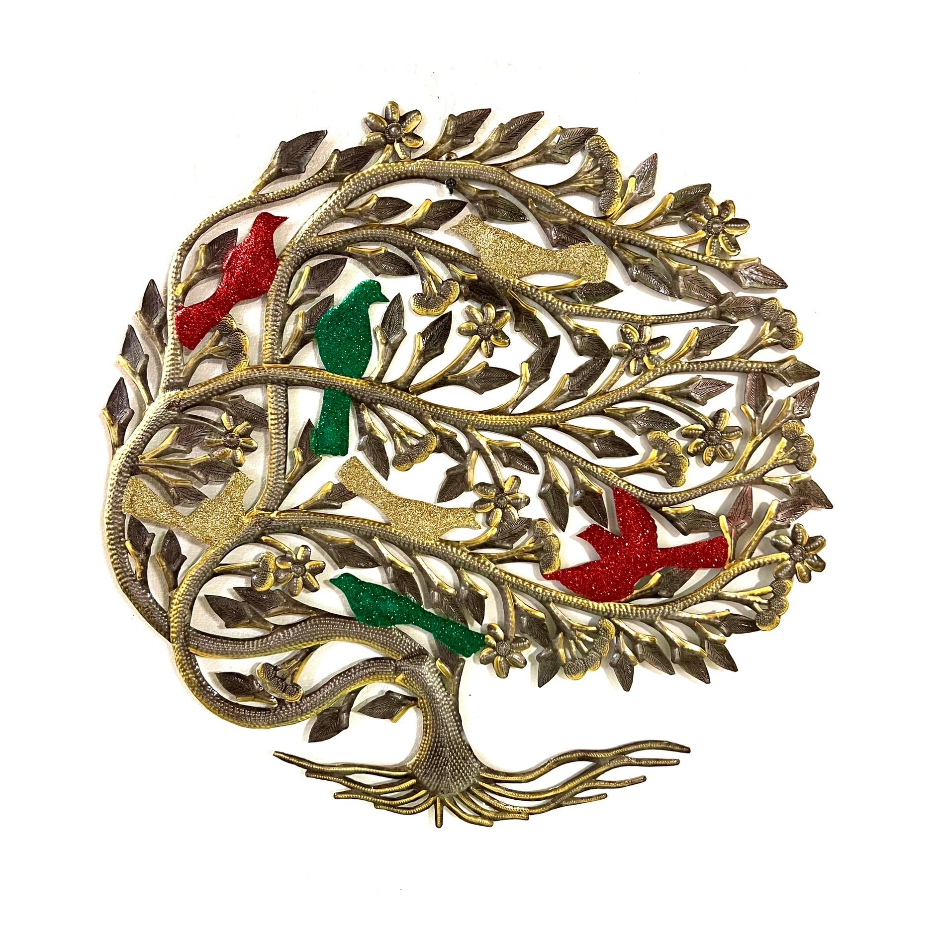 One of the most celebrated Haitian art forms, steel drum art is always a winner! Each piece is hand crafted from recycled 55 gallon drums using only a hammer and a few small tools that resemble railroad spikes. Each piece is a true work of art!