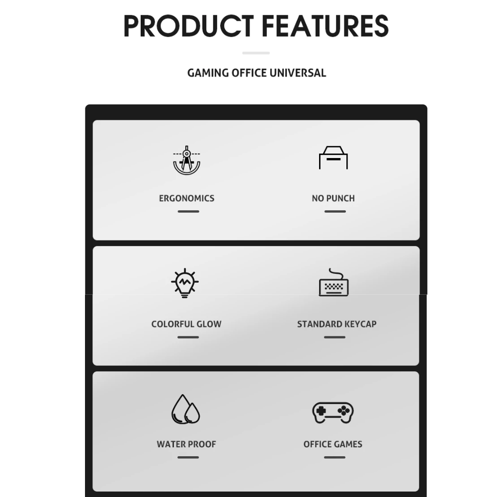Glow USB Backlit Gaming Keyboard, a wired marvel designed for immersive gaming experiences with mechanical feel. Illuminate your gaming setup with its vibrant MULTICOLOR backlighting, adding a touch of style to every keystroke. The slim design not only enhances the keyboard's aesthetics but also ensures a sleek and comfortable gaming experience. Elevate your gaming sessions with this USB Color Backlit Gaming Keyboard, where functionality meets a visually stunning design.