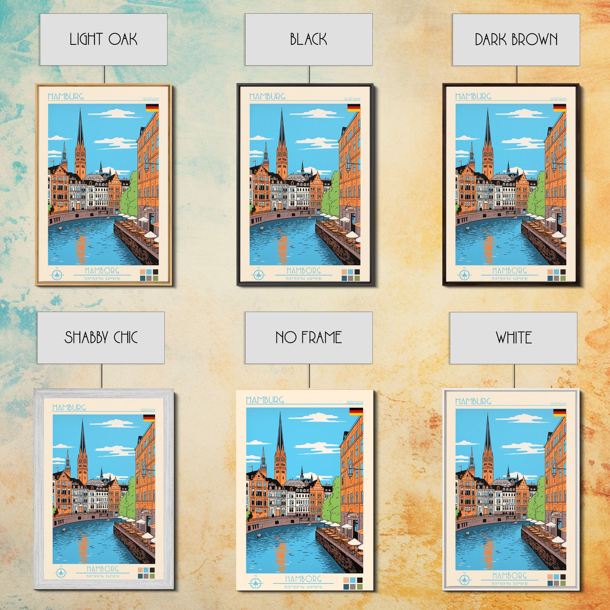 Hamburg Germany Travel Poster Framed Canvas Print, Midcentury Modern Art, Pop Art Wall Decor, Scenic Wall Art, Bedroom Decoration, Office Art