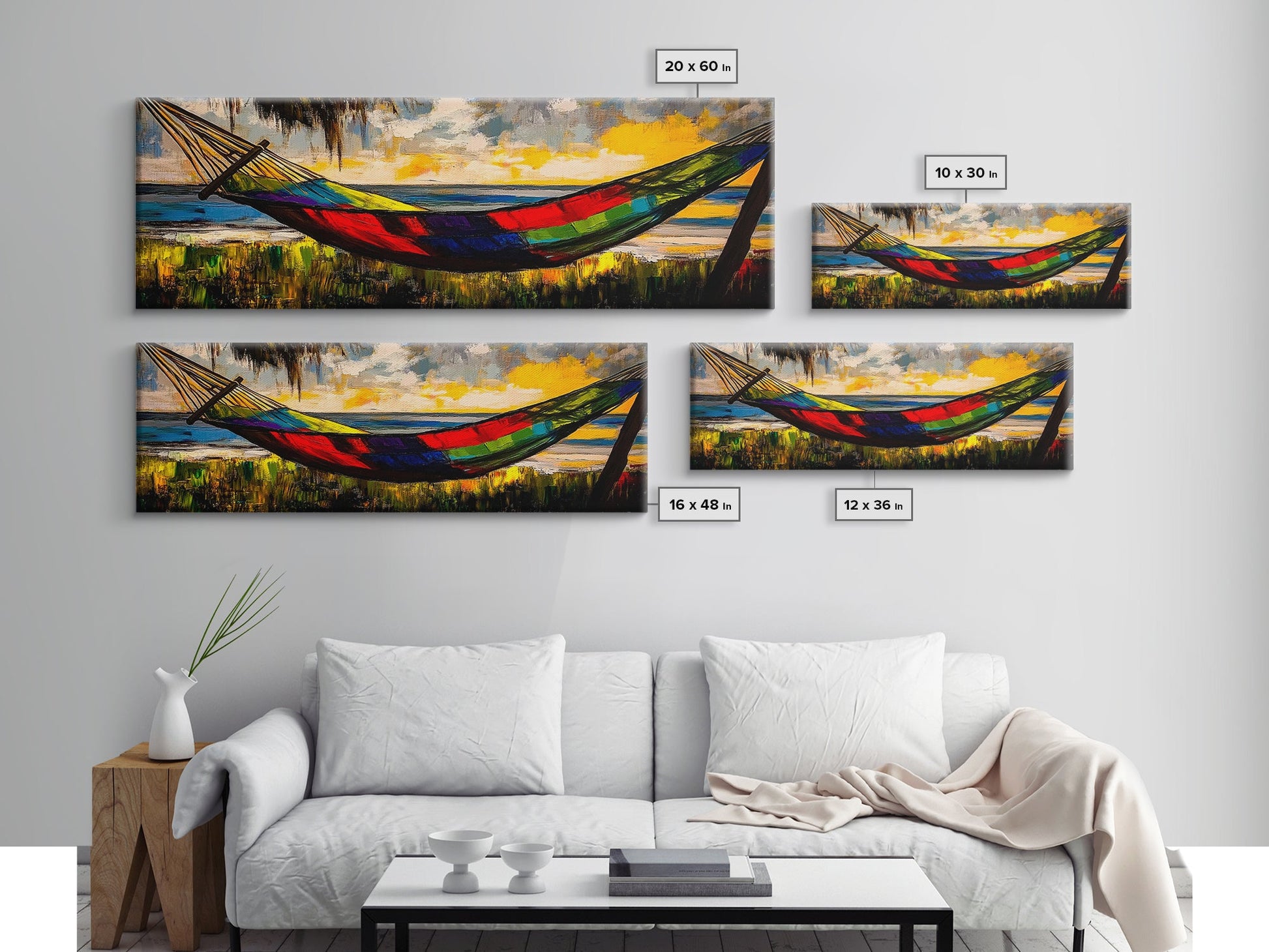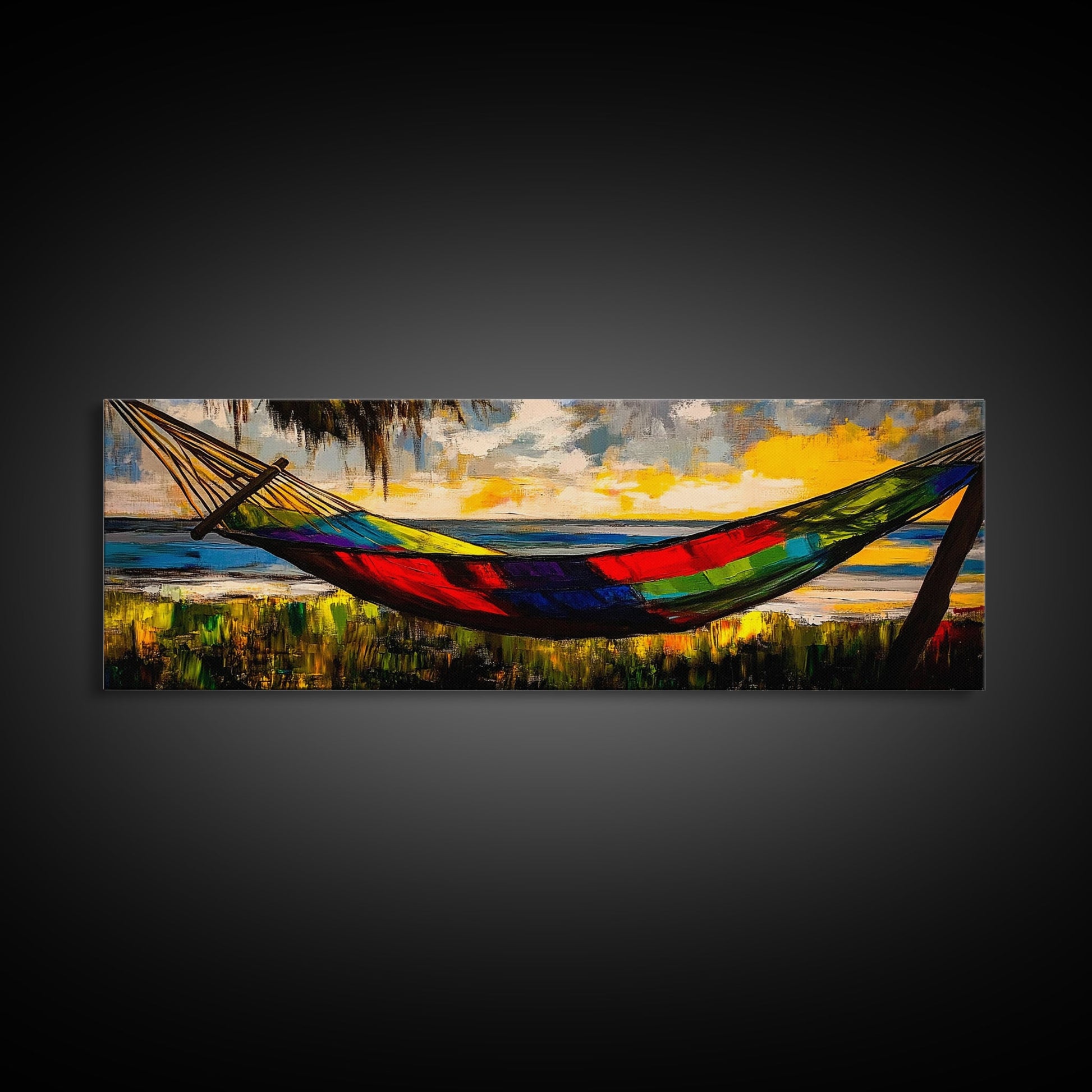 Hammock by the Beach, Tropical Sunset Painting, Relaxing Seaside Artwork, Vibrant Summer Wall Decor, Coastal Retreat, Canvas Print