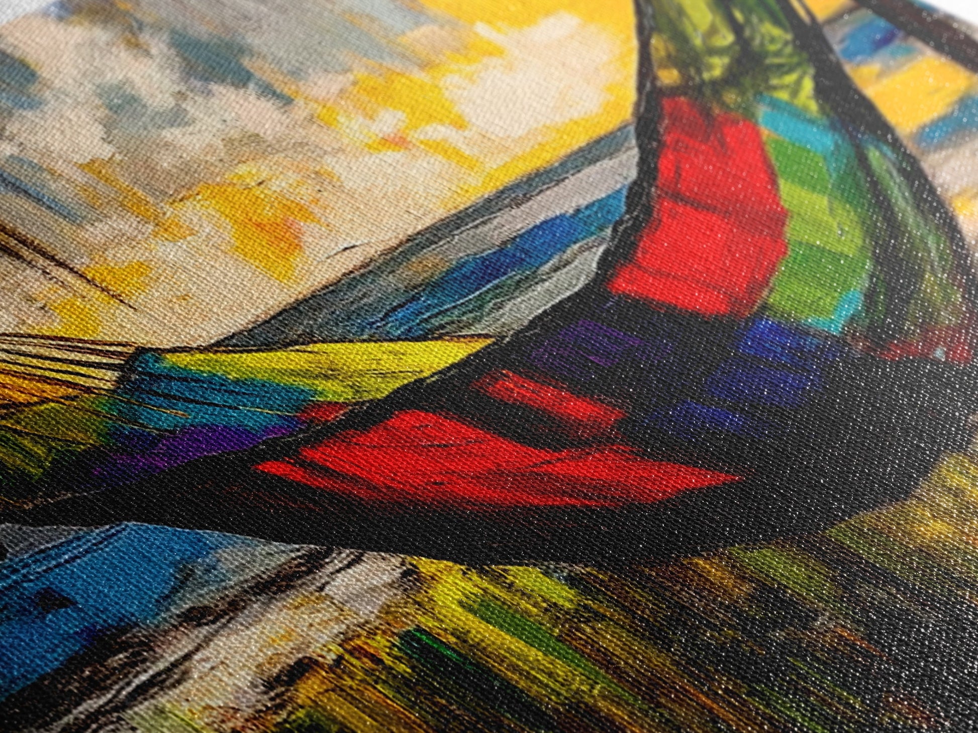 Most of our canvases are made in the USA, with the exception of canvases ordered with the light oak unstained frames, and any large canvases (24x48, 30x60, 16x48 and 20x60) ordered WITH a frame. These are temporarily made in and shipped from Europe, while we try to find a more consistent supplier in the USA.