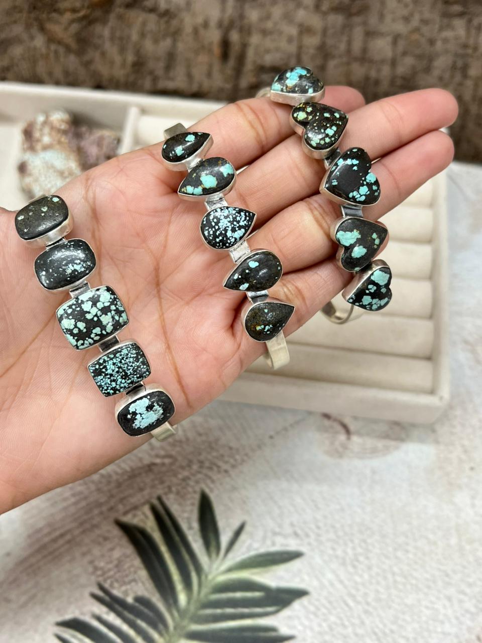 Handmade Lander Turquoise and Sterling Silver Cuff Bracelet. Beautiful craftsmanship! Cuff has an inside Circumference of 7 (Adjustable) with 1 inch gap.