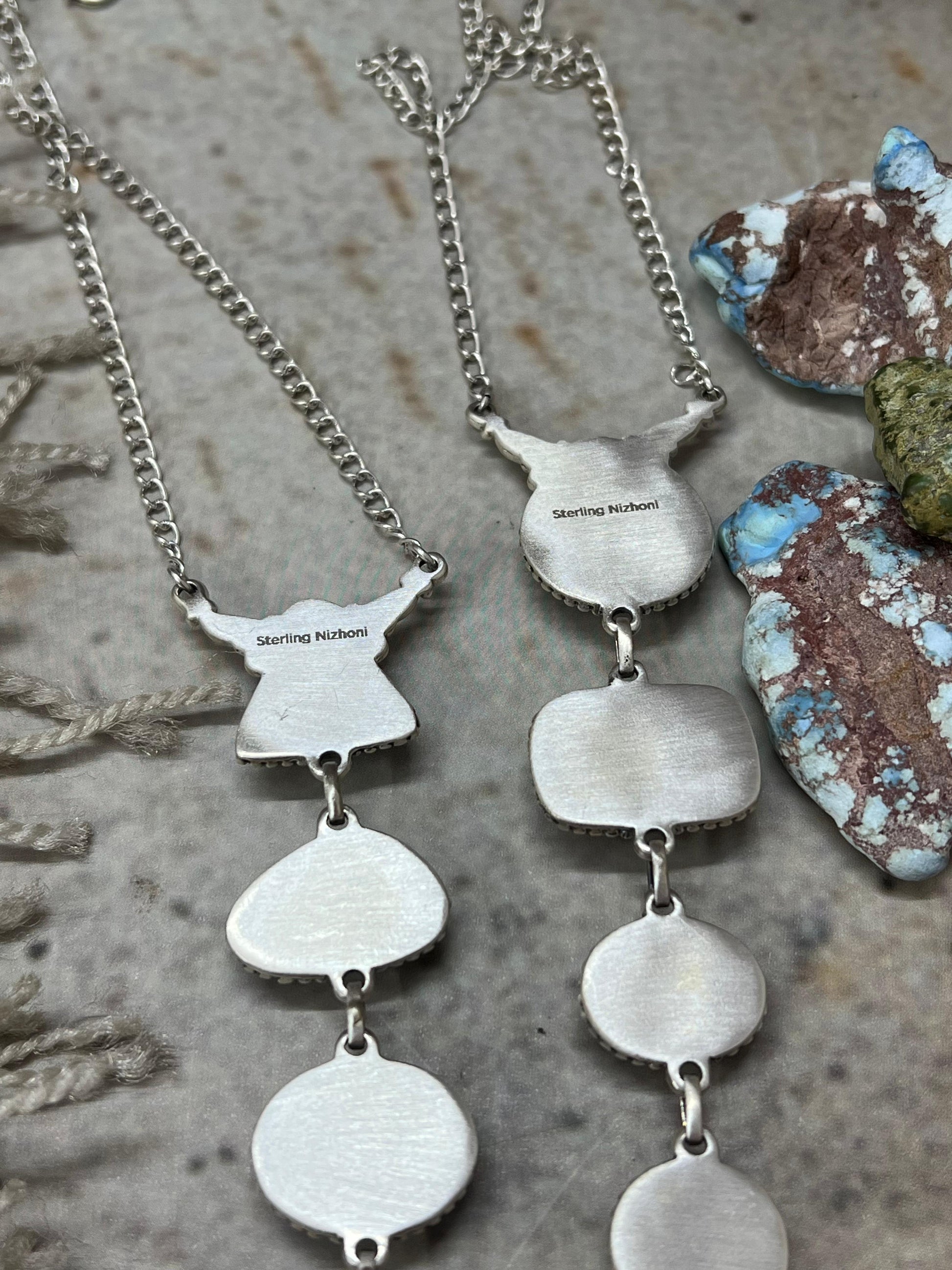 Such gorgeous craftsmanship! Sterling Silver Royston Ribbon Turquoise Necklace Measures Length 16+3" Extension, Width 1 6/8" with an additional drop of 5 3/8".