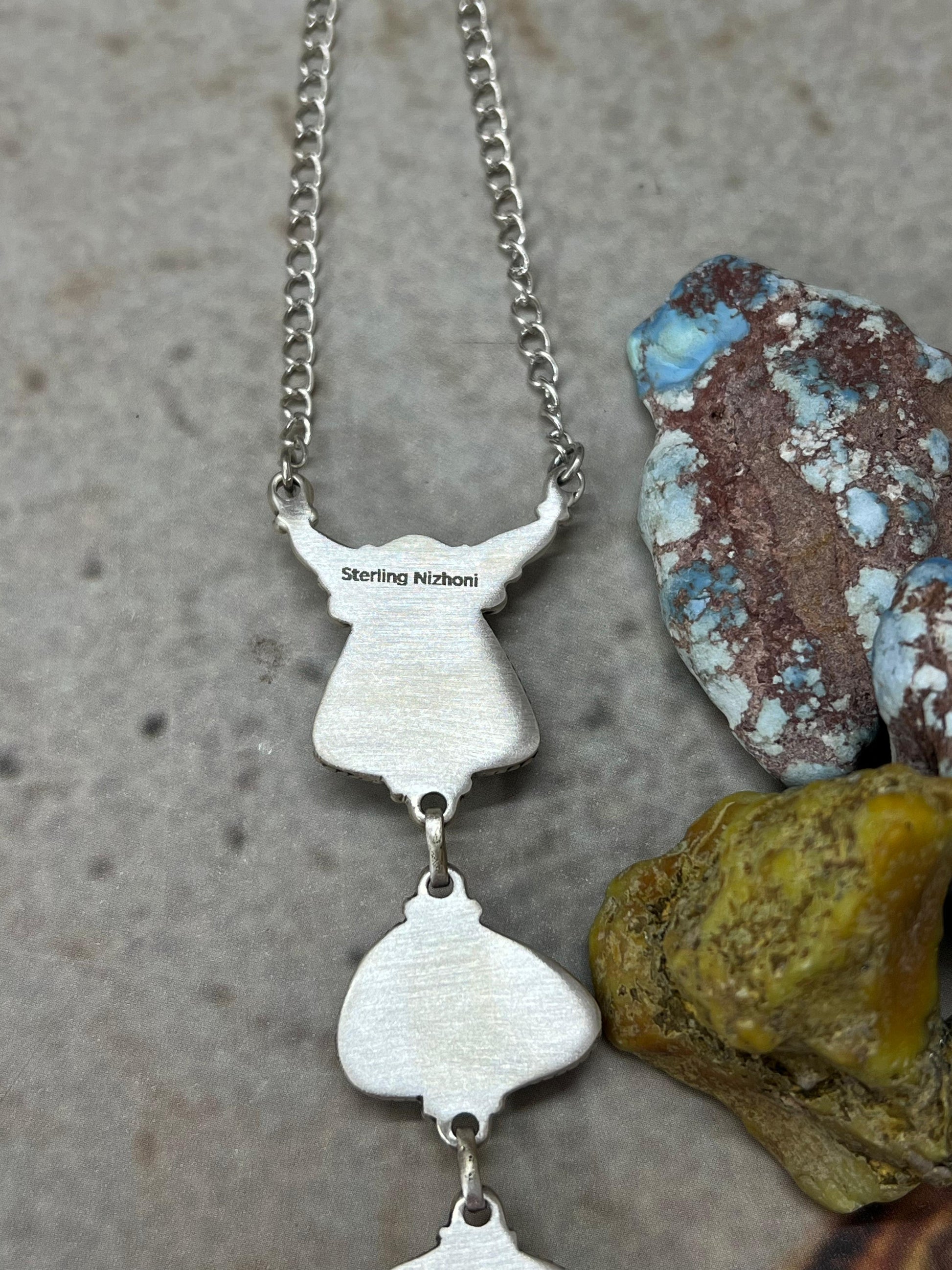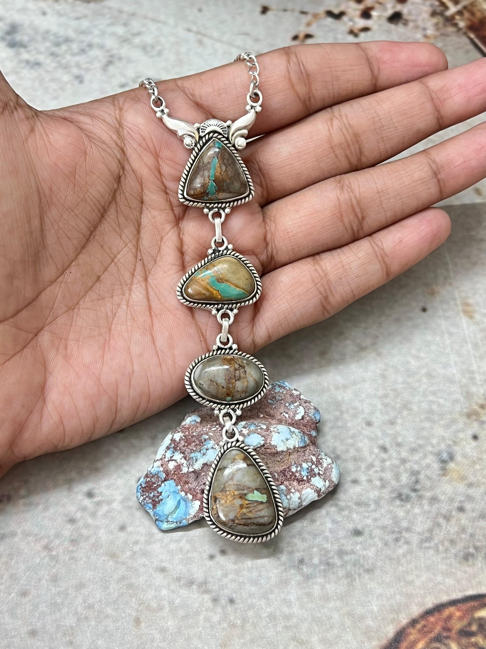 Such gorgeous craftsmanship! Sterling Silver Royston Ribbon Turquoise Necklace Measures Length 16+3" Extension, Width 1" with an additional drop of 4 3/8".
