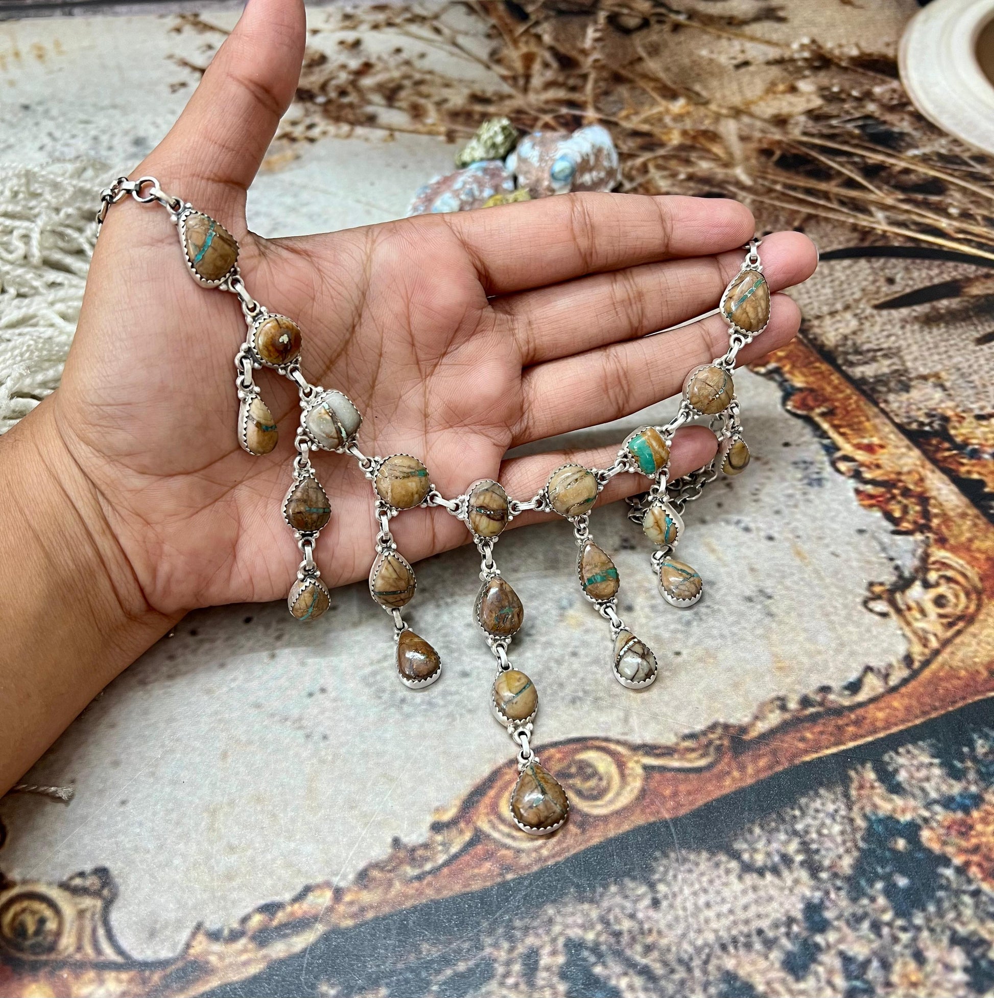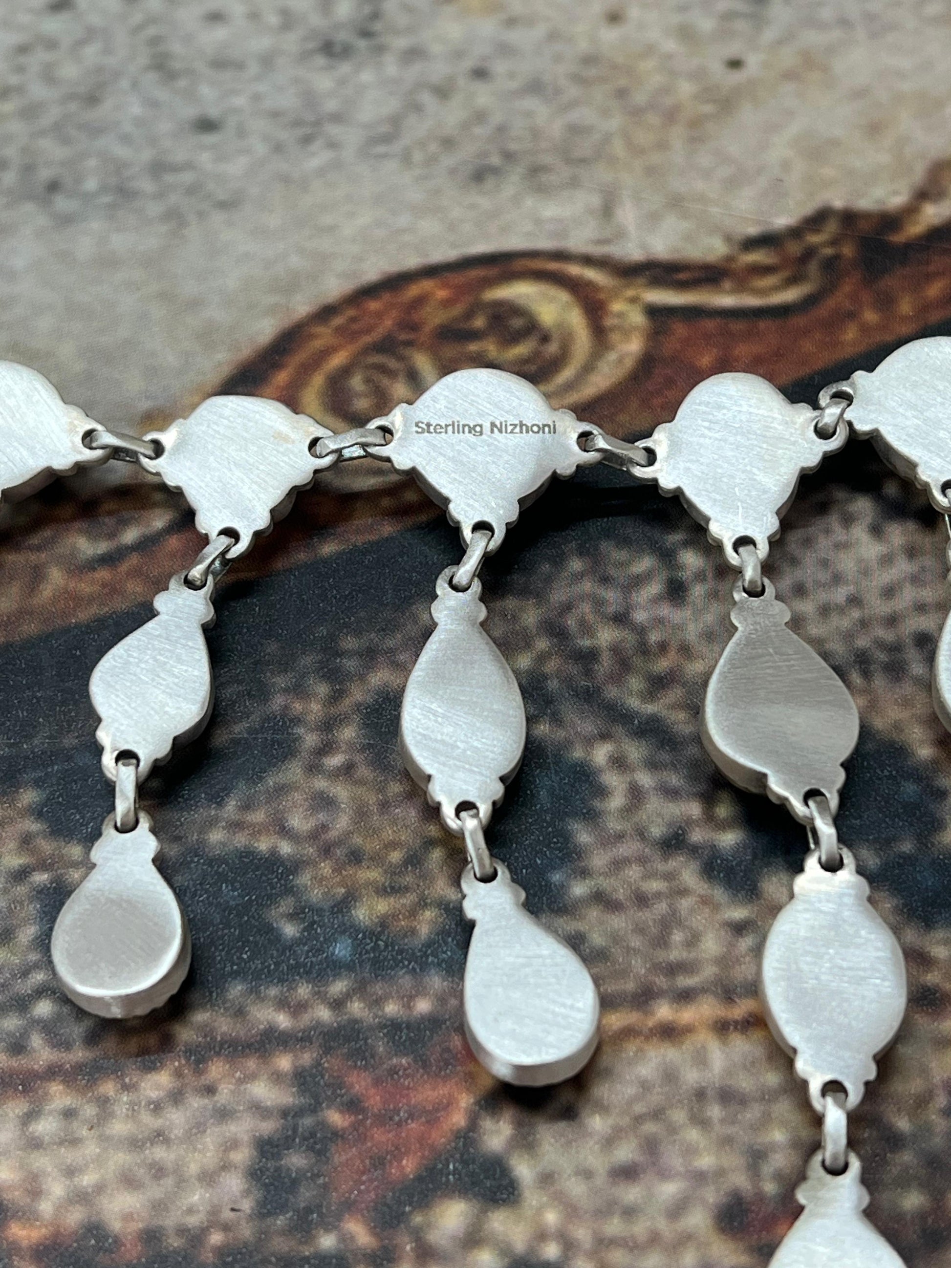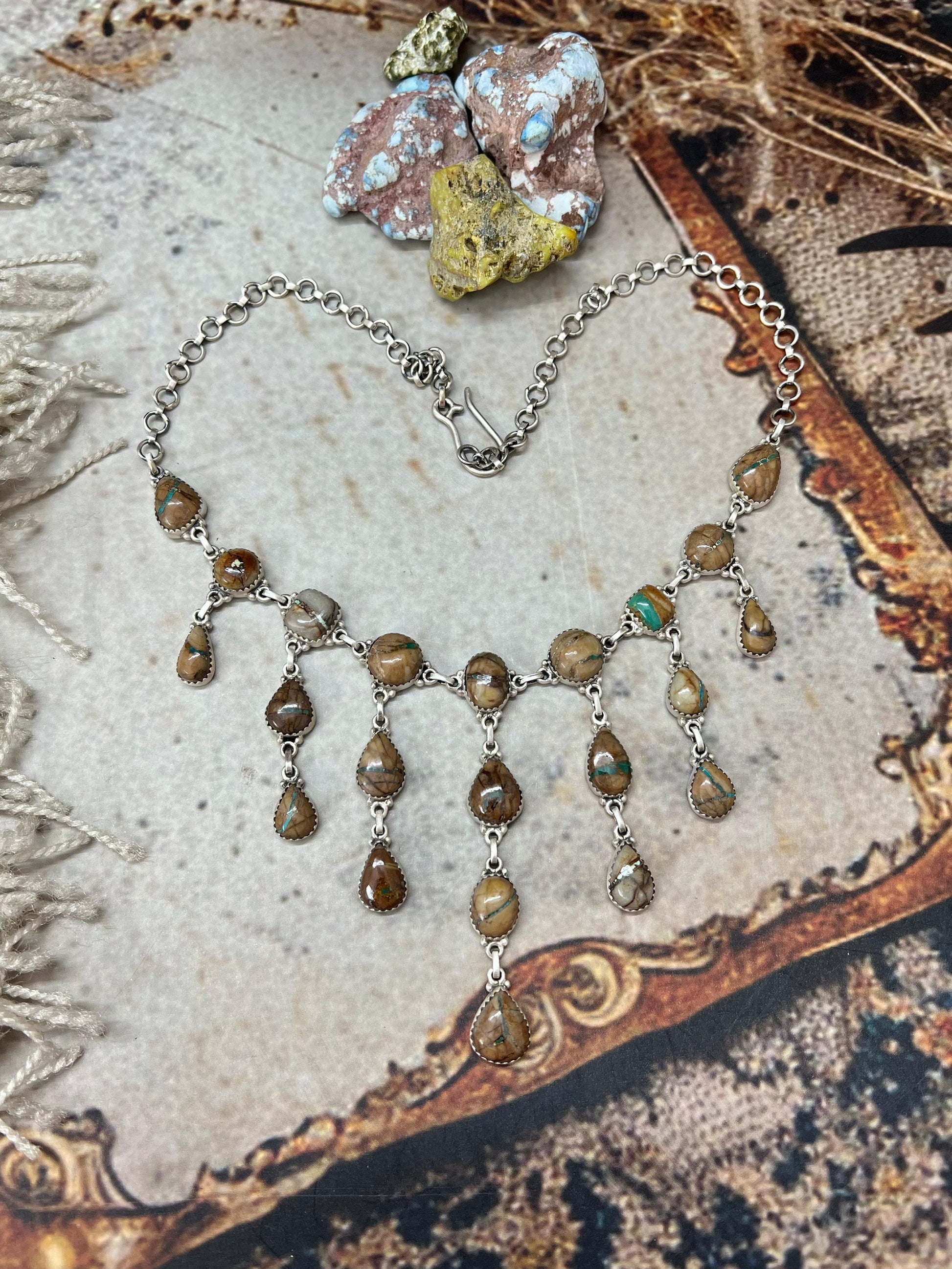 Such gorgeous craftsmanship! Sterling Silver Royston Ribbon Turquoise Necklace Measures Length 16+3" Extension, Width 5/8" with an additional drop of 3 1/8".
