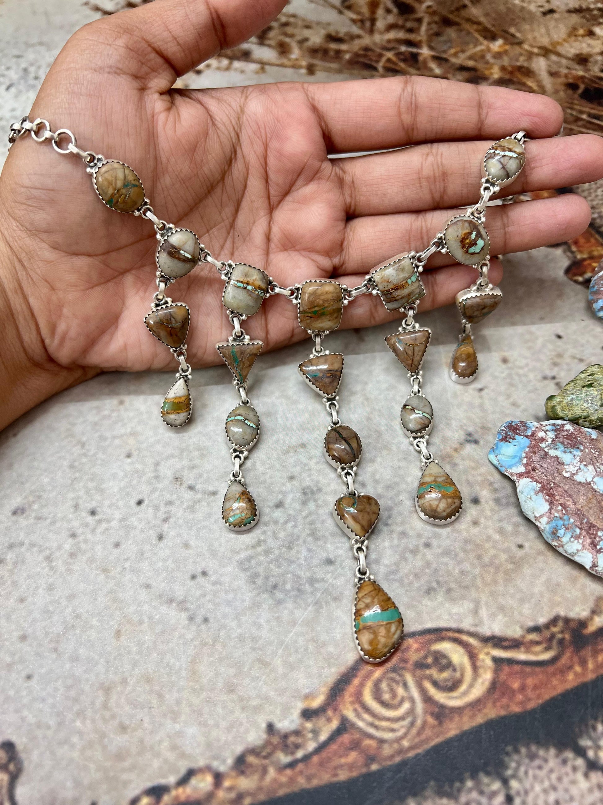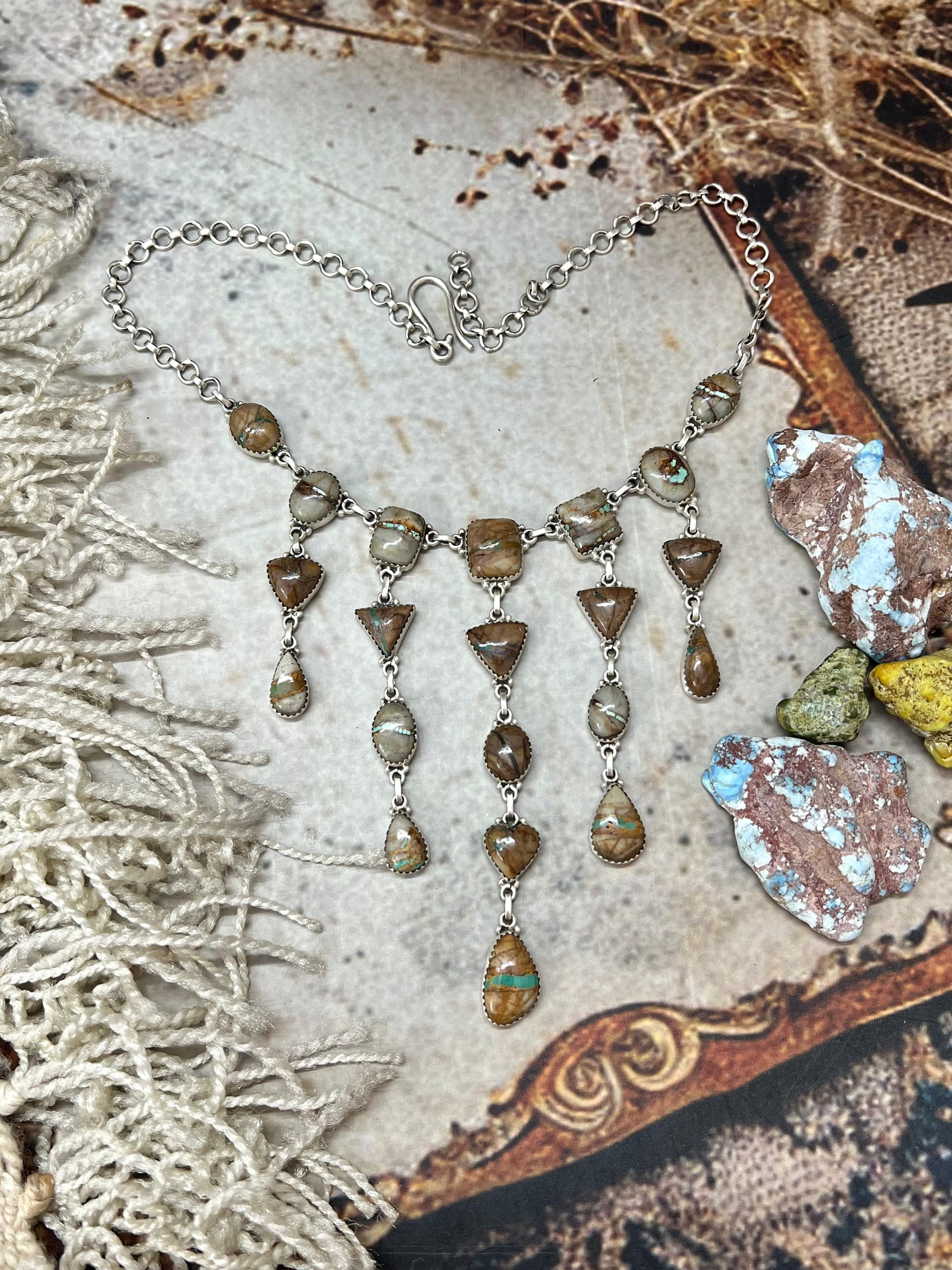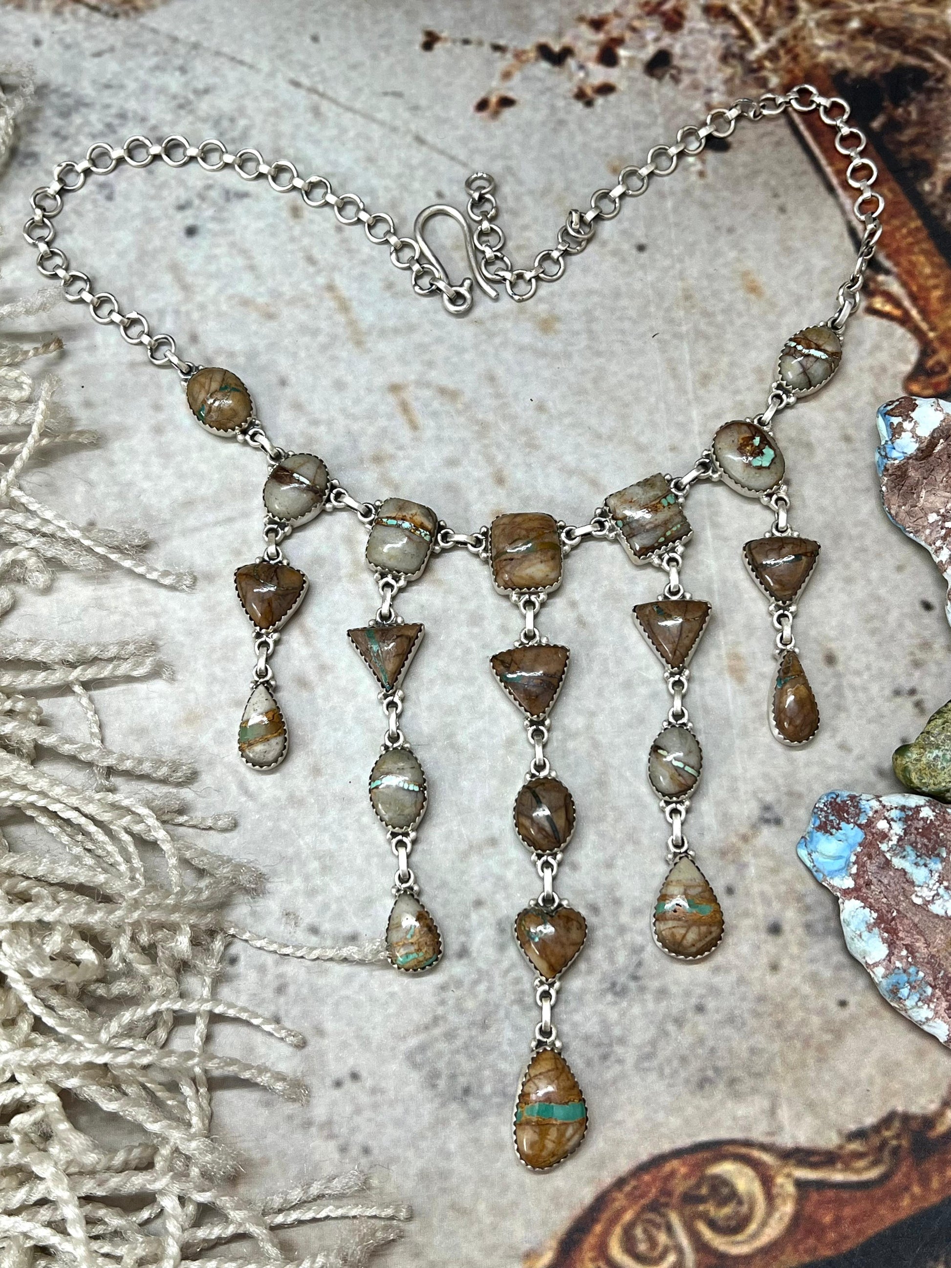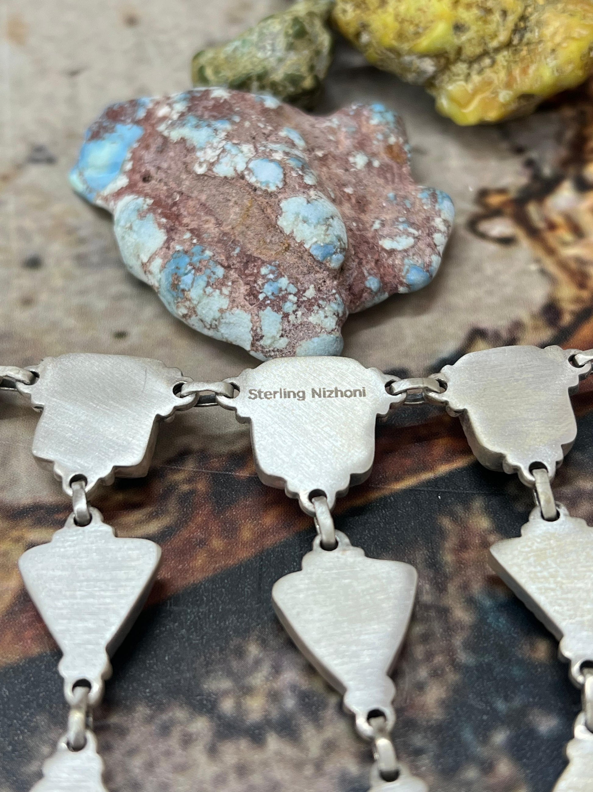 Such gorgeous craftsmanship! Sterling Silver Royston Ribbon Turquoise Necklace Measures Length 16+2" Extension, Width 6/8" with an additional drop of 4 1/8".