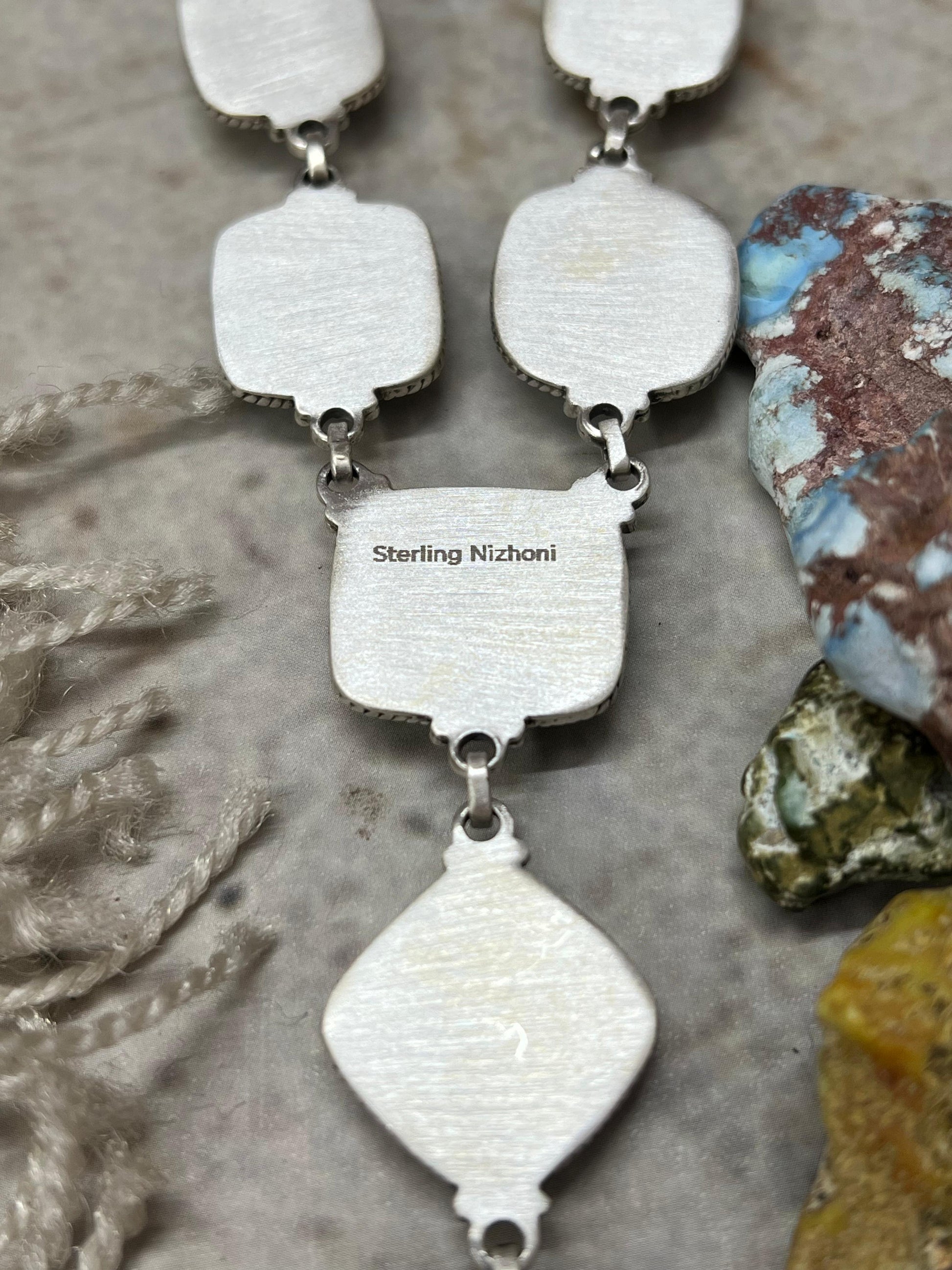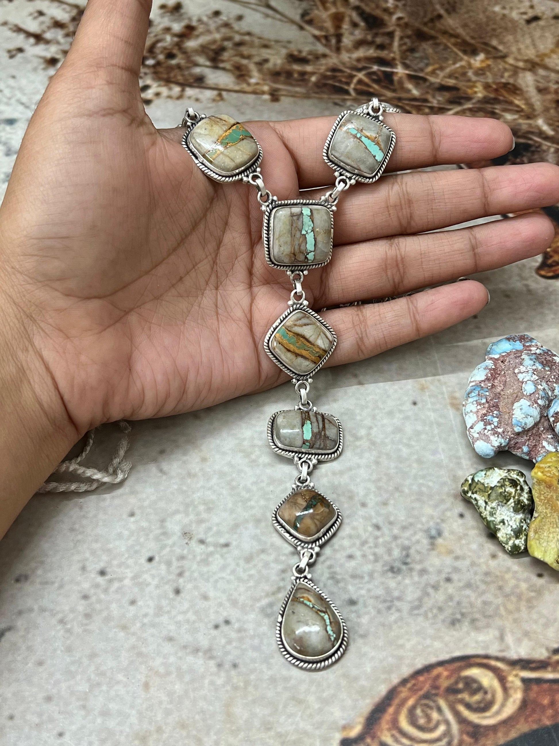 Such gorgeous craftsmanship! Sterling Silver Royston Ribbon Turquoise Necklace Measures Length 16+5" Extension, Width 1" with an additional drop of 5 4/8".