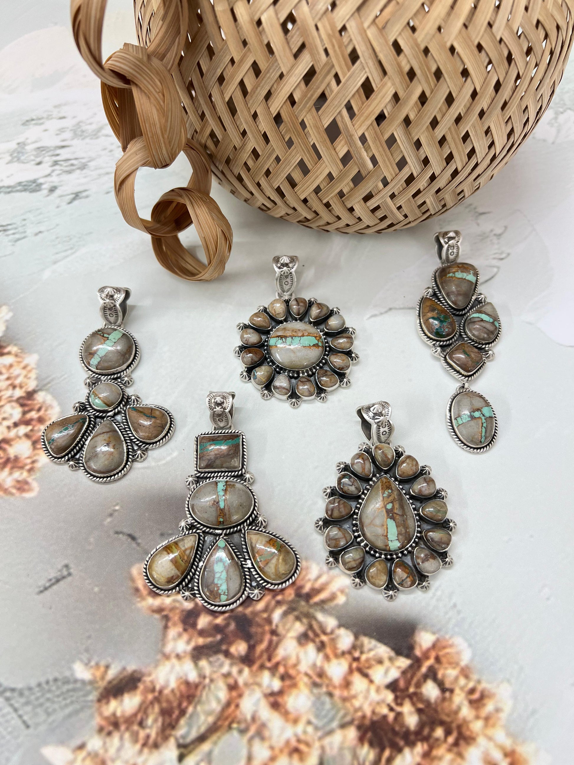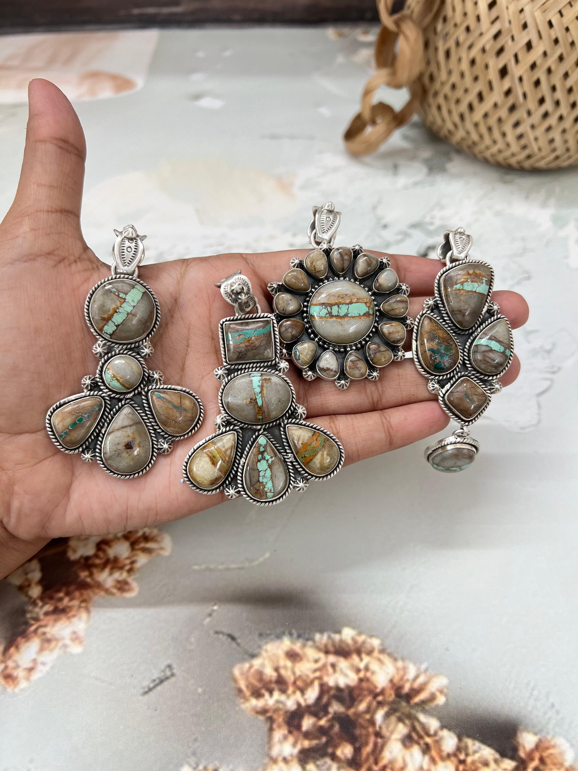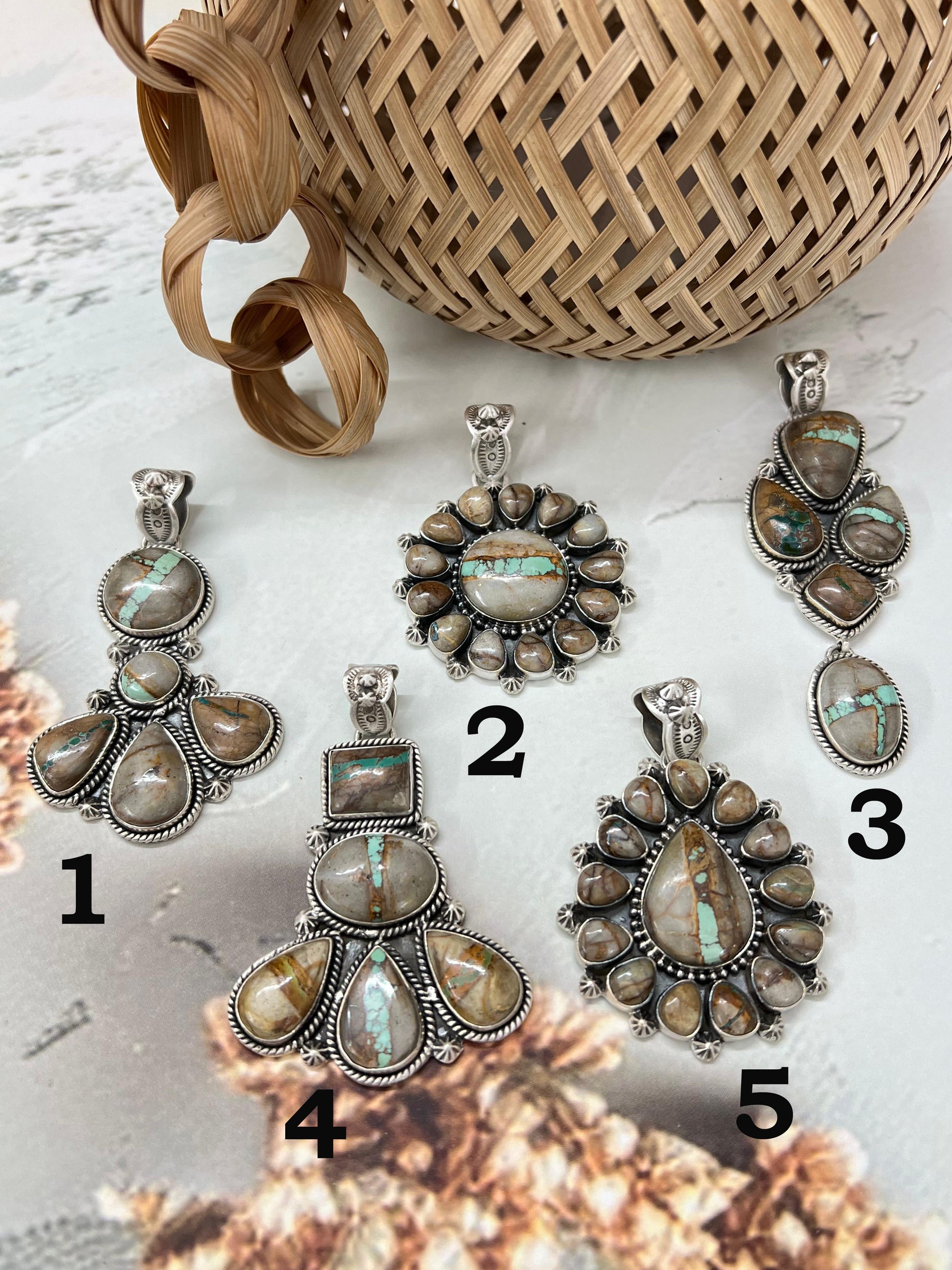 Beautiful Sterling Silver Royston Ribbon Turquoise Pendant Measures length 2 3/8 - 3 5/8" and width 1 1/8 - 1 5/8".