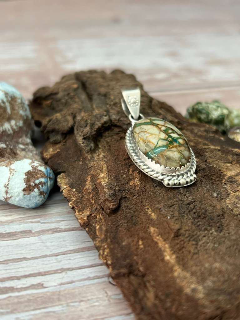Beautiful Sterling Silver Royston Ribbon Turquoise Pendant Measures length 1 3/8" and width 6/8".